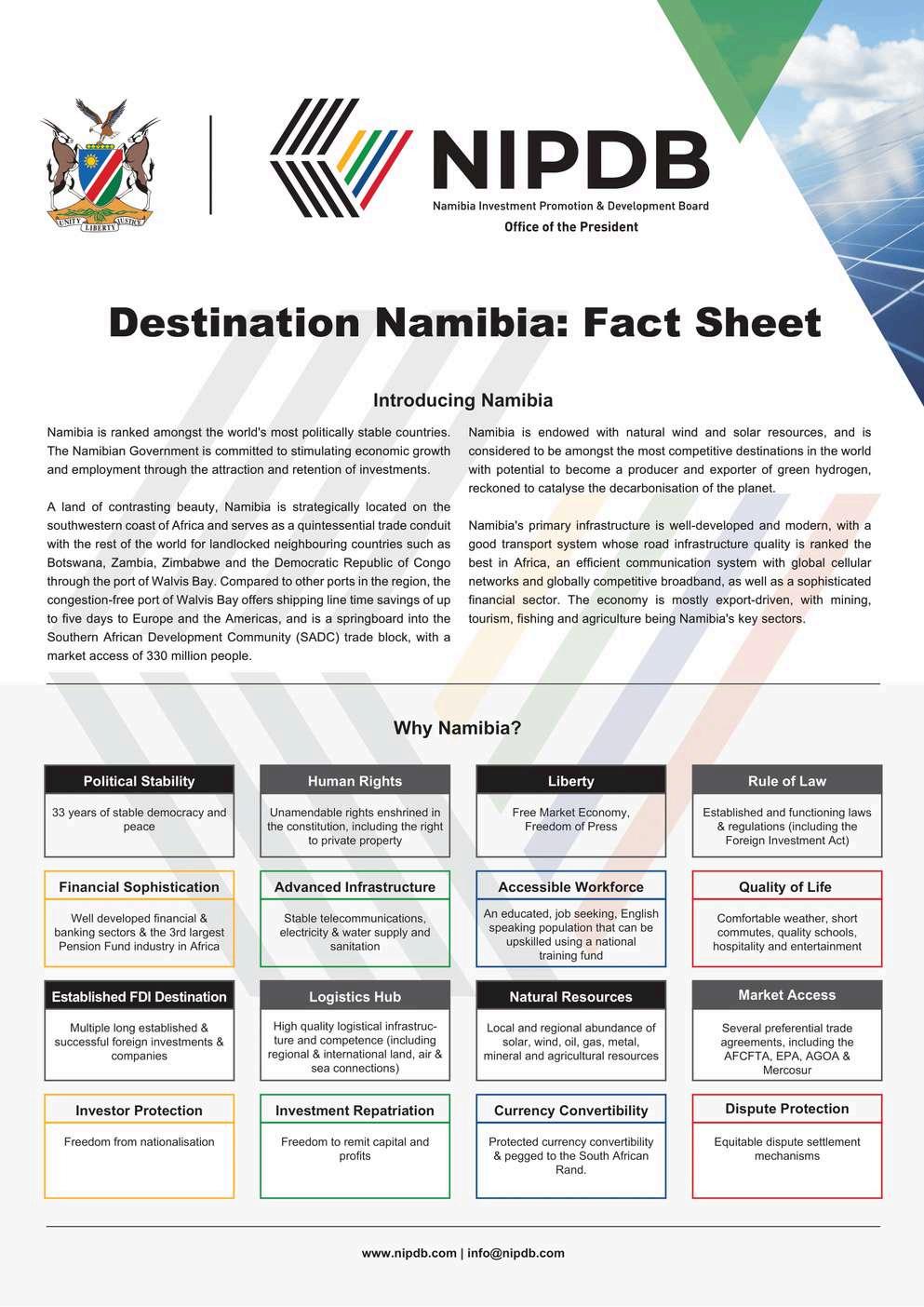 A key driver of this transition is renewable energy Integrating renewable energy into Namibia’s climate resilience framework could potentially yield long-termeconomicbenefits Thiscanbedonebyadvancinginvestmentsin solar and wind infrastructure to minimize reliance on imported fossil fuels andprotecttheeconomyfromvolatileglobalenergymarkets
