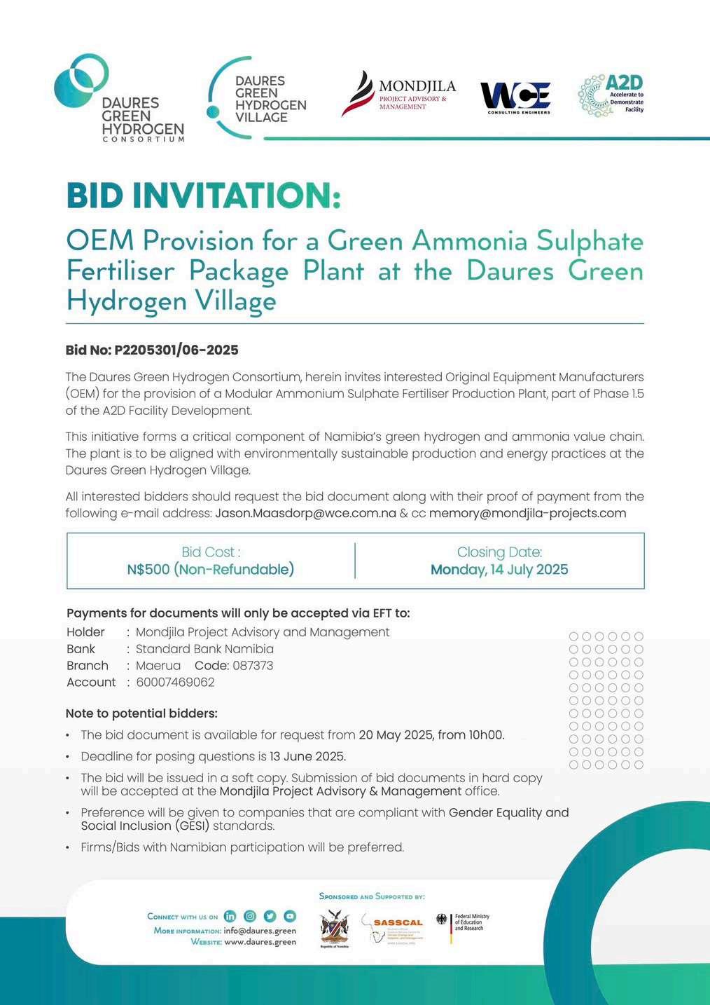 Closing date: 13 Jun 2025 at 10h00 Namibian Time