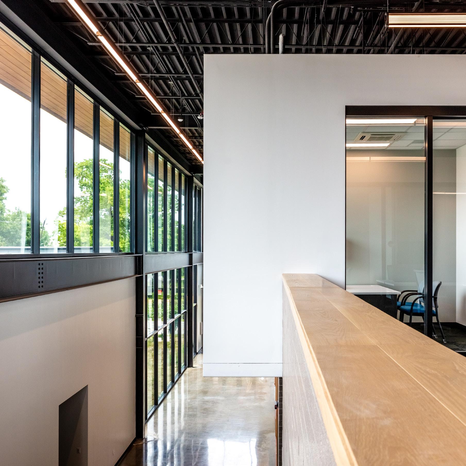 Daylight for the administrative spaces was an important factor in the design, resulting in an open concept between the two floors that borrows light from the expanse of glazing on the North façade. Vertically marrying the floors has also helped to create a more collaborative environment that encourages community amongst all staff and epartments.