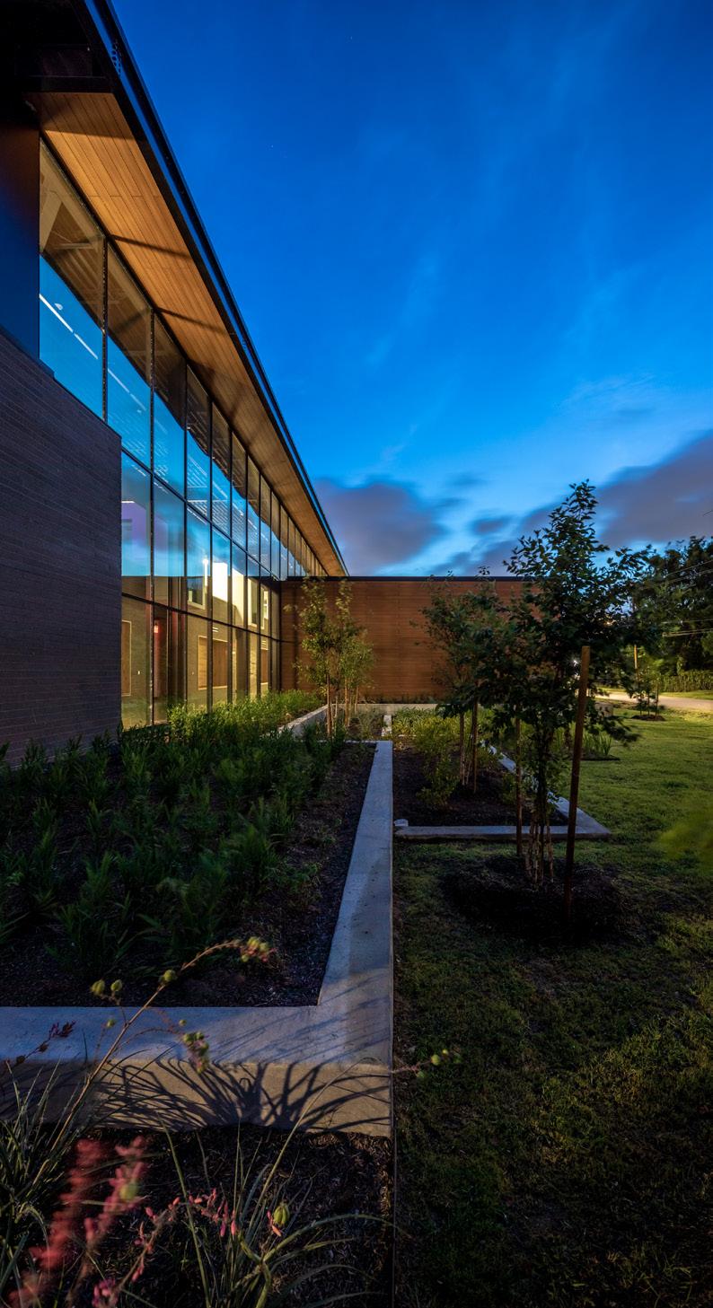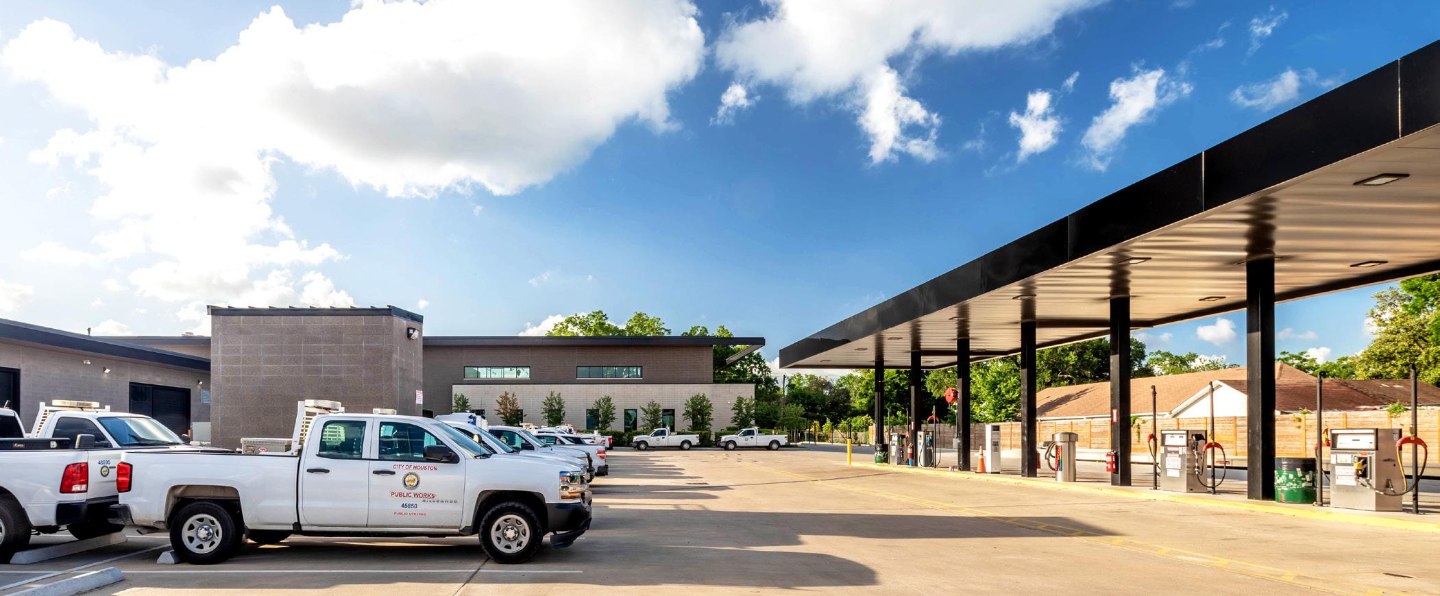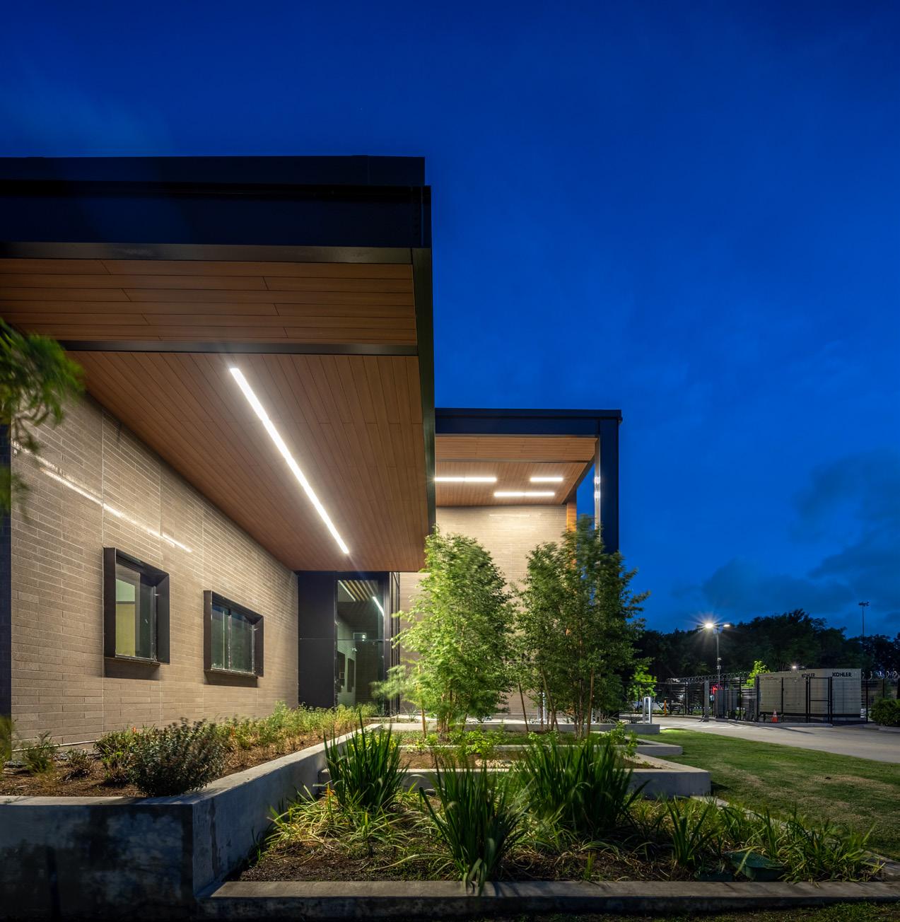 The design team placed an emphasis on energy, storm & water LEED credits due to its more suburban environment. Additionally, we utilized cost effective LEED strategies in consideration of the construction budget and the life cycle cost. A life-cycle building impact assessment was performed, and we were able to achieve energy cost savings of 27.9% under the ASHRAE standard utilizing a split system with VRF technology. The site is equipt with EV charging stations, as much of the City of Houston fleet is comprised of electric vehicles. Daylighting strategies were used effectively throughout the building with large stretches of northern glazing. The site is landcape throughout with native plantings.