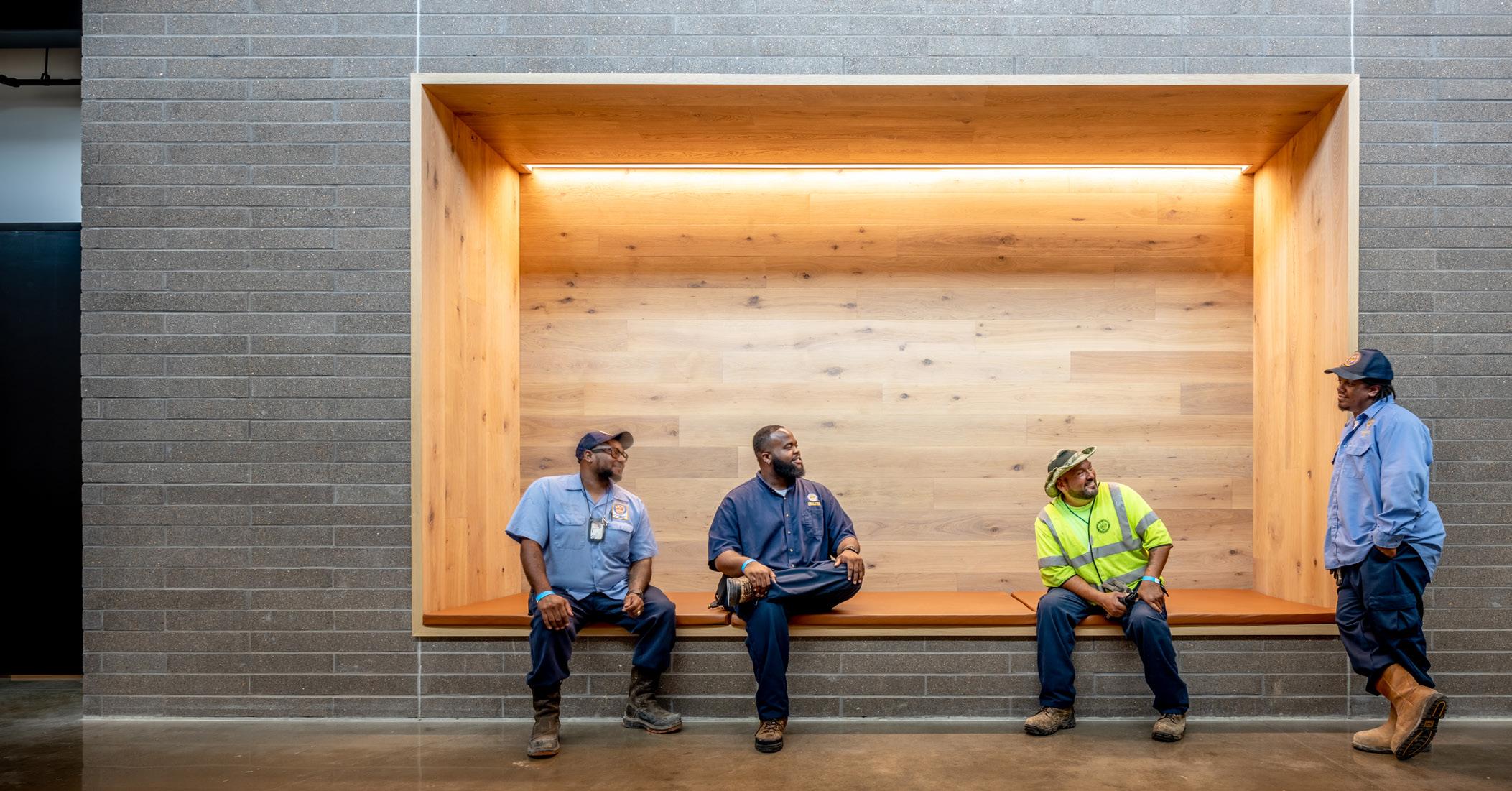 The new 33,500 sf facility replaced a decaying, fragmented building on the site which had been retrofitted several time in an attempt to meet the needs of the organization. Through careful analysis of their operations, a refreshed building program was imagined which would better serve the needs of the Drinking Water, Wastewater, and Business Services departments residing in the NE quadrant. Over 120 field workers use this quadrant as a home base during their day, and we feel it is crucial that the importance of their work maintaining clean, reliable infrastructure be reflected in their workplace. Previously unheralded and forced into poor conditions, these laborers are now occupying a space that celebrates them, instilling a sense of pride and professionalism.