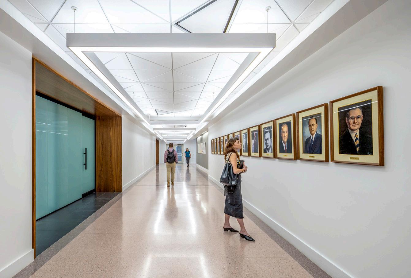 The facility is designed to enhance adjacencies and circulation between divisions through a collaborative work environment. The design provides opportunities to interact in multiple ways, from formal meetings in the auditorium and various meeting spaces, to informal interactions in the indoor and outdoor break areas.