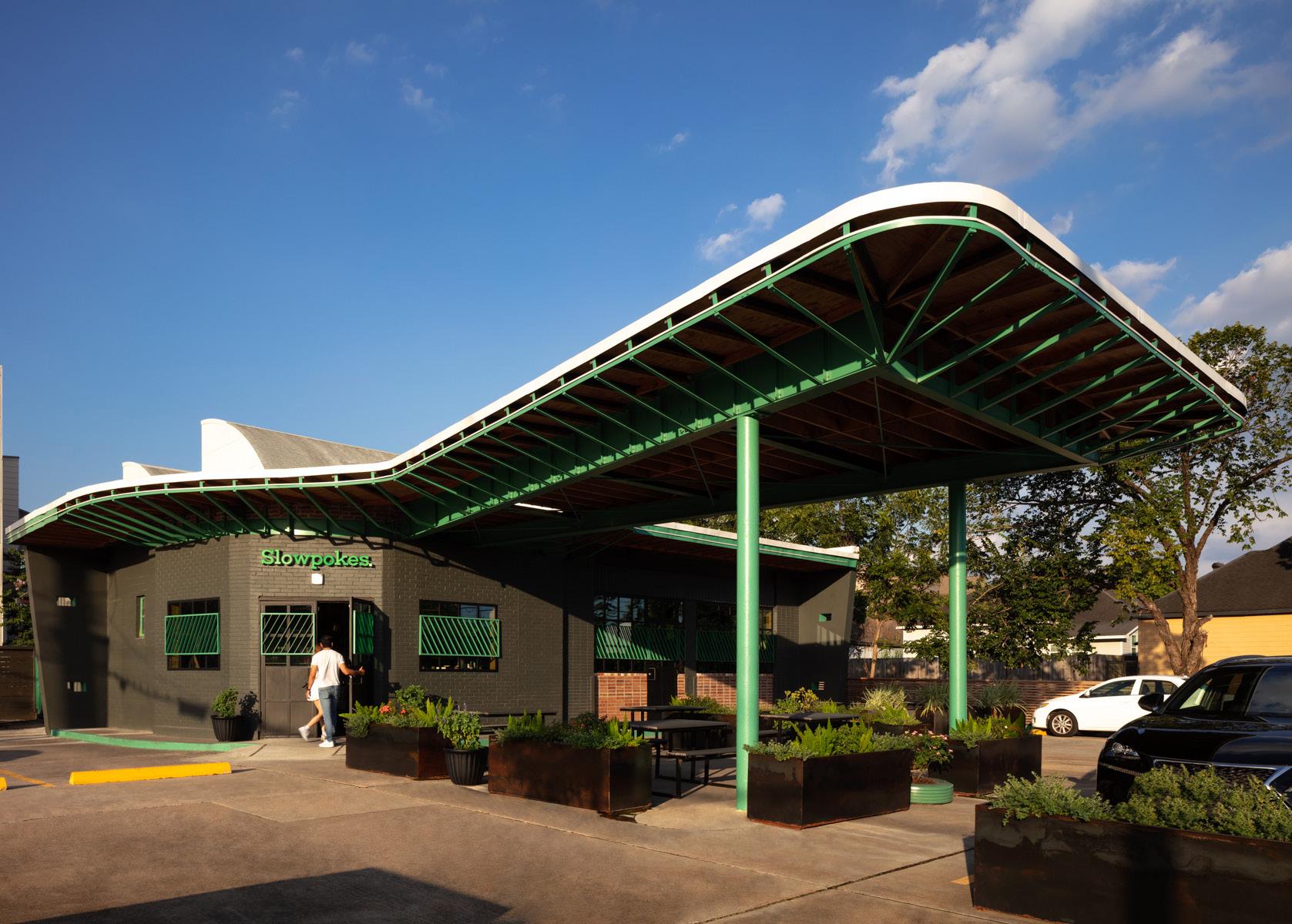 Slowpokes’ fifth Houston location transforms a historic filling station at Sampson and Canal into a 2,600-square-foot café in the East End. Designed for community connection, it blends historic preservation with modern aesthetics, featuring a welcoming patio, flexible performance space, and warm interiors, fostering a vibrant neighborhood gathering spot.
