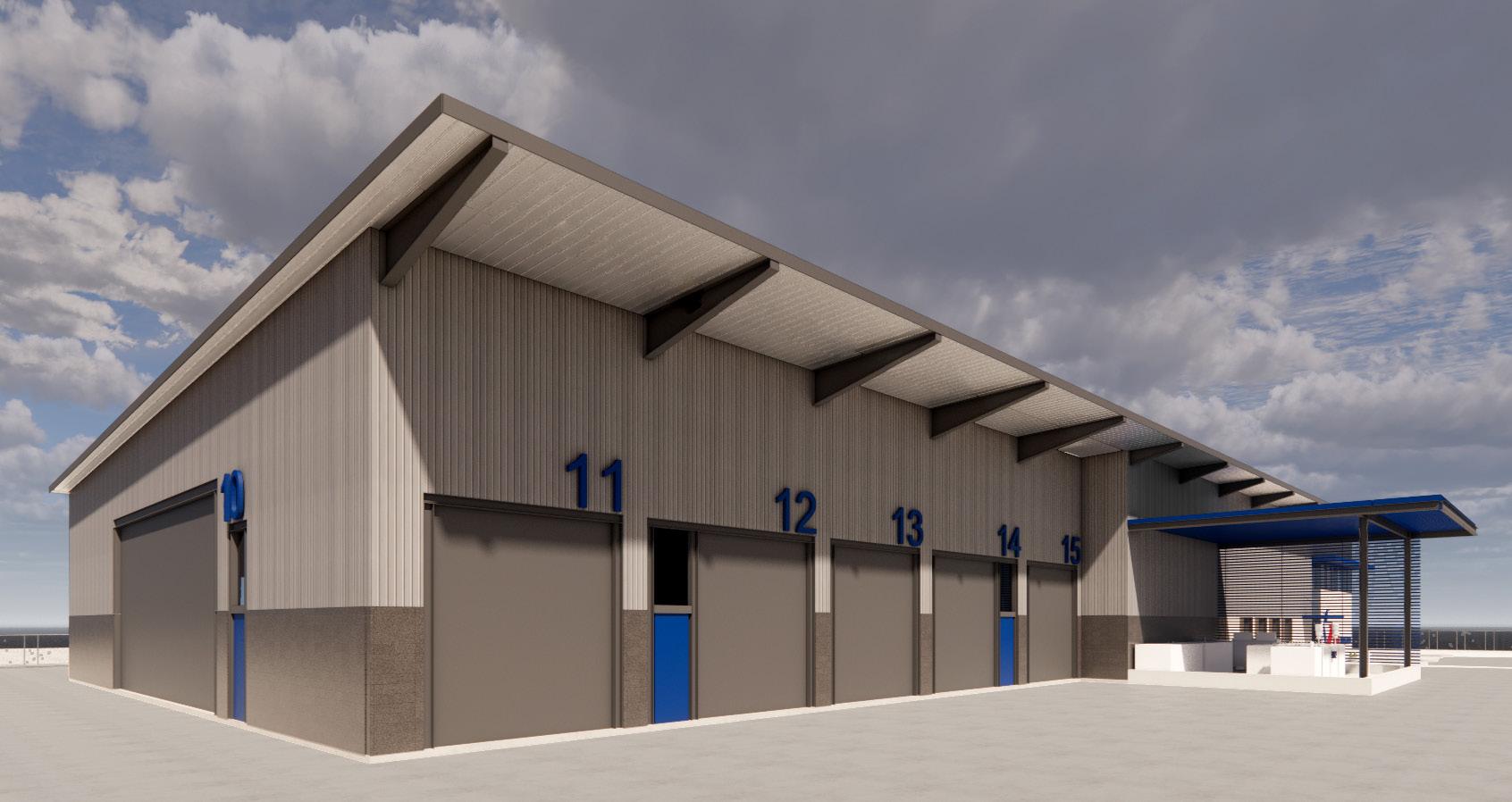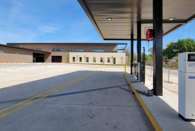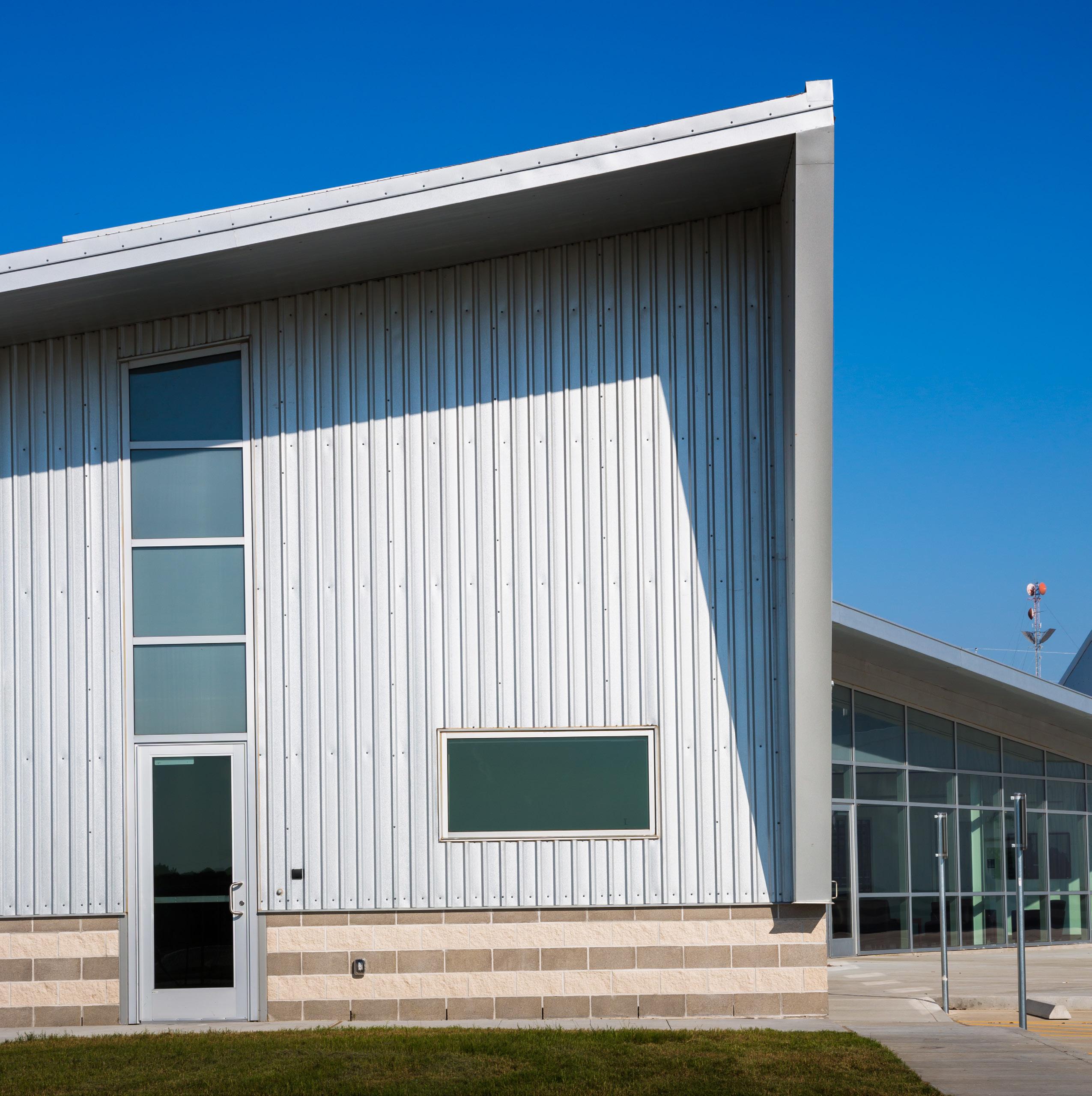The new Satellite Transportation Center is a pre-engineered metal building and includes approximately 32,720 sf of administrative office space, IT data center, and service area, with 4 mechanic bays, a tire bay, a wash bay, an oil/pit bay, fueling island, and associated storage areas. The Center is designed to allow expansion of 4 more service bays in the future.