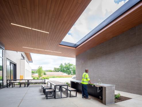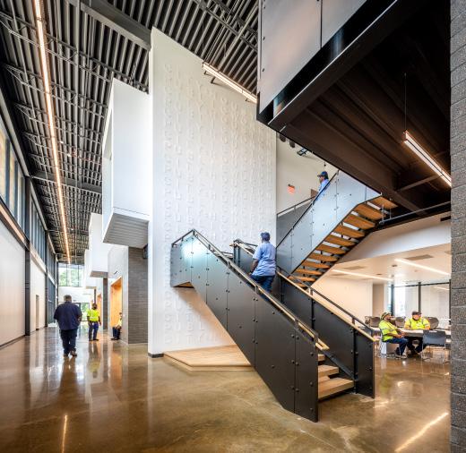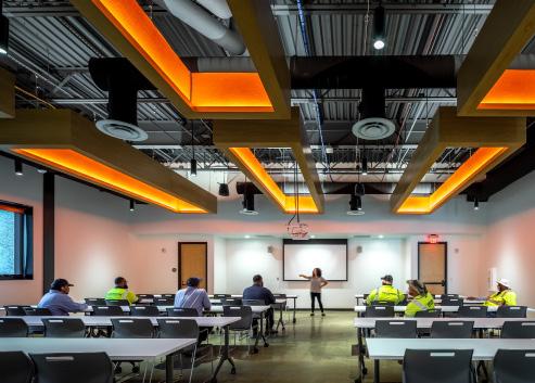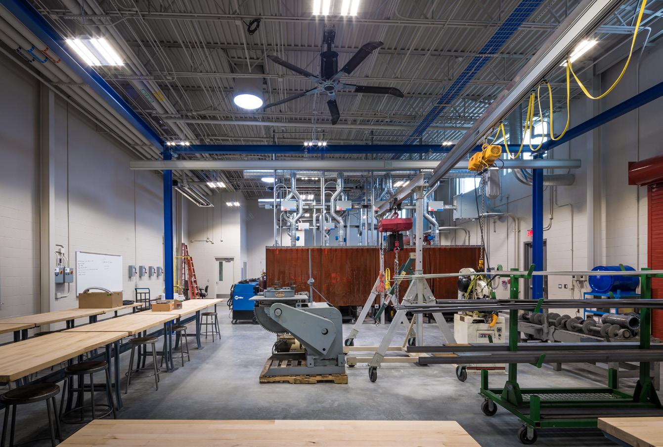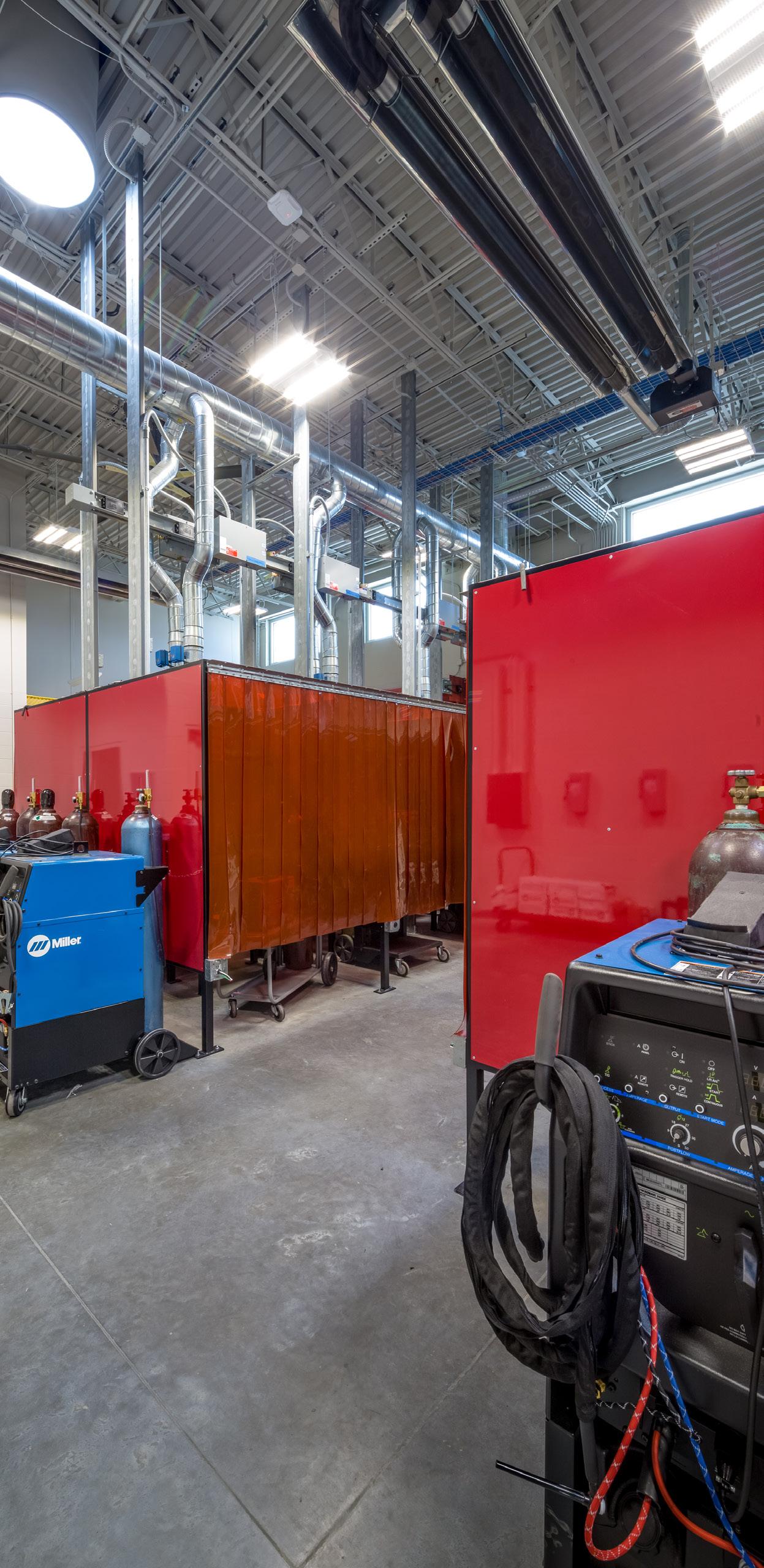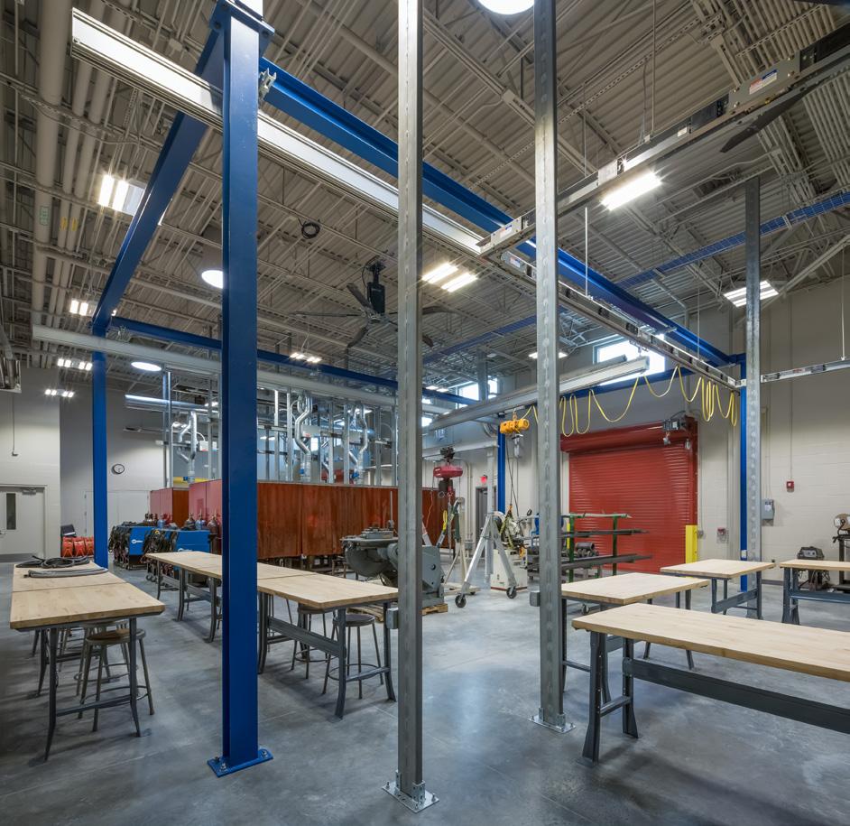 The design reflects the industrial nature of this technical training in form and materiality. Significant design considerations include collaborative learning spaces and generous amounts of natural lighting to aid student performance. The new 57,000 sf building houses classes in advanced manufacturing, robotics, pipe-fitting and welding including laboratories, technology-rich classrooms and administrative offices.
