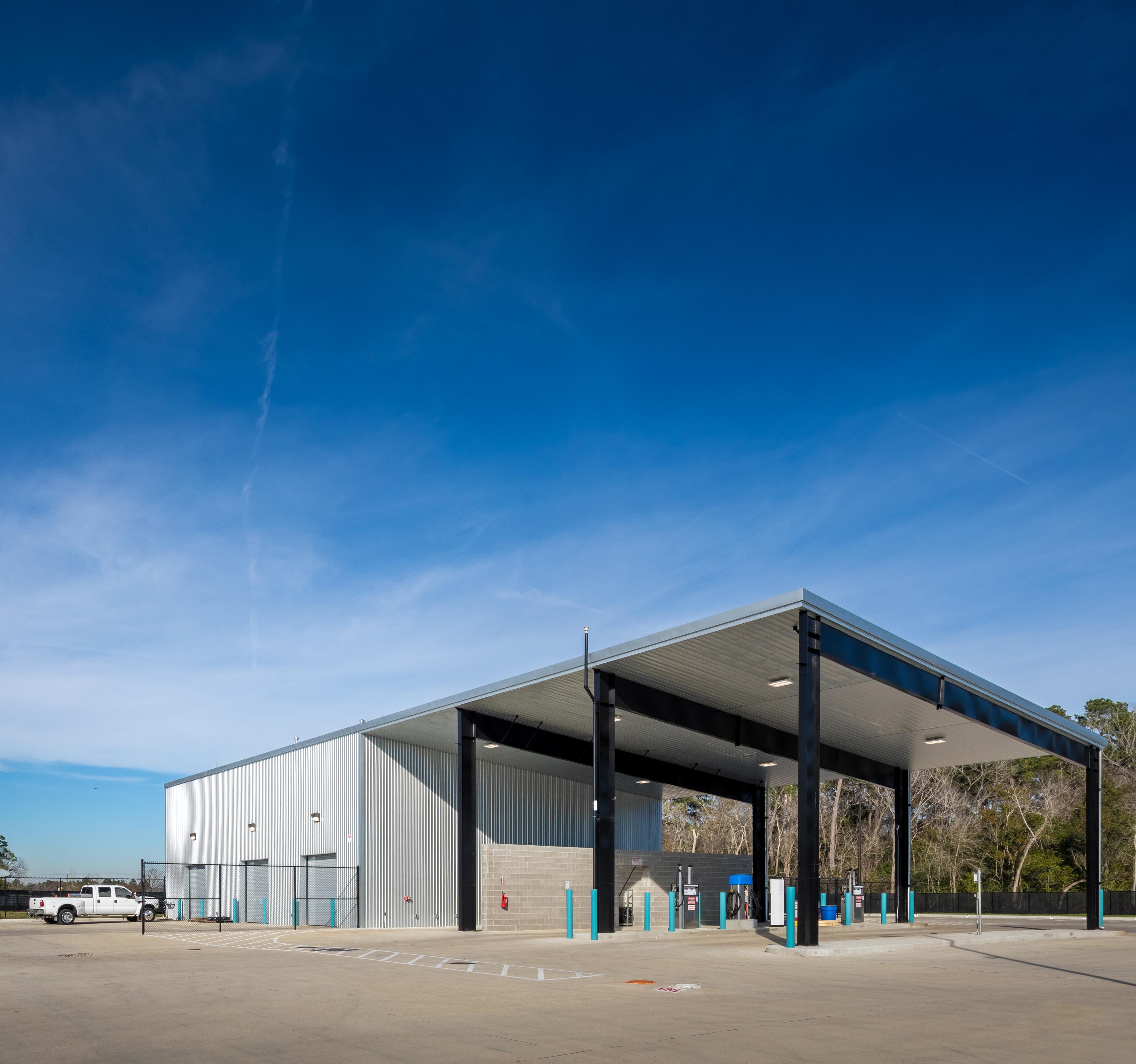 The 33, 500 sf facility is used as a staging area for the City of Houston PWE utility workers in the northeast quadrant and includes space for administrative and support services for the Water, Wastewater, and Restoration divisions of PWE. The building was oriented to allow for separate drives separating heavy vehicle traffic from pedestrian paths, and non-fleet vehicles.