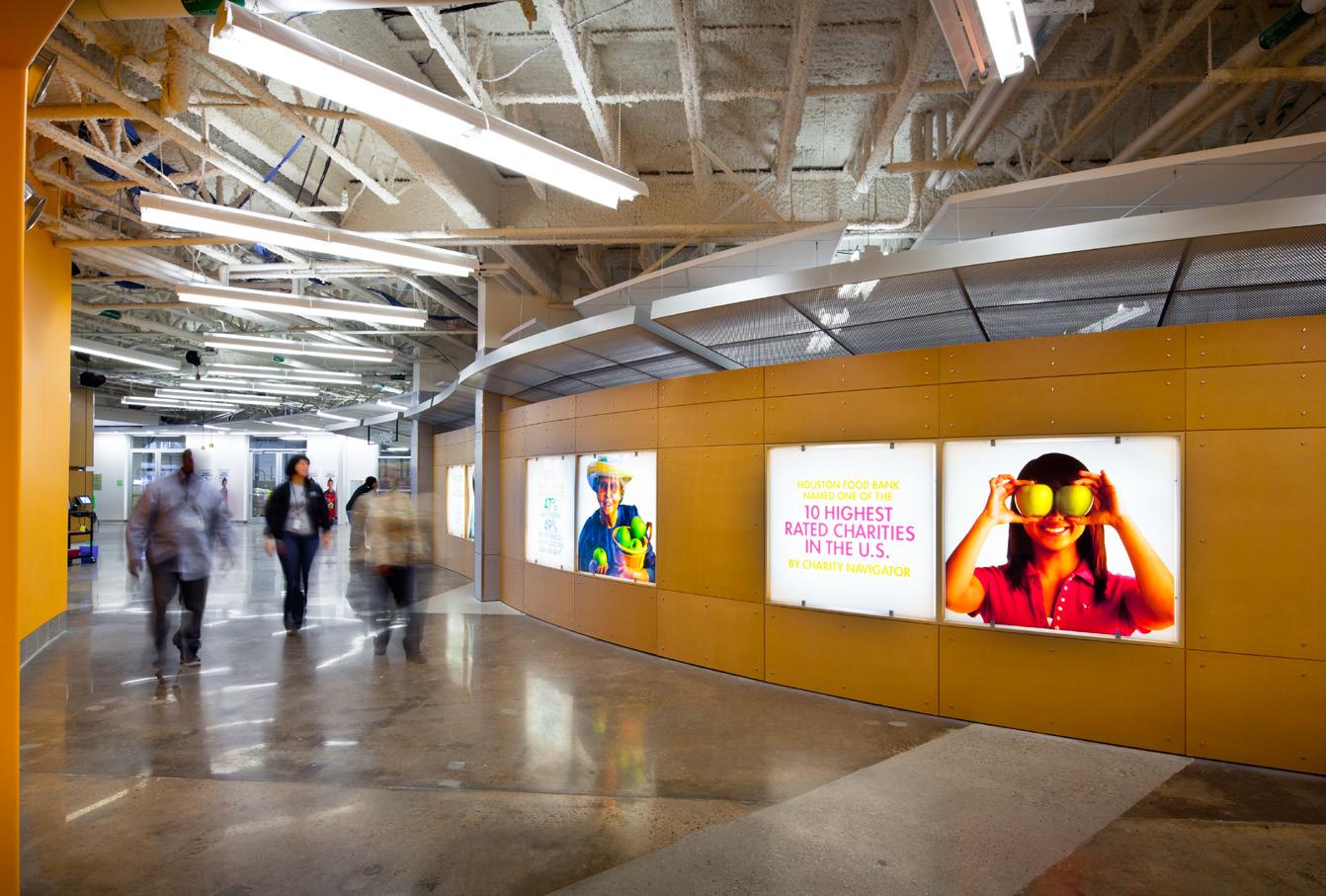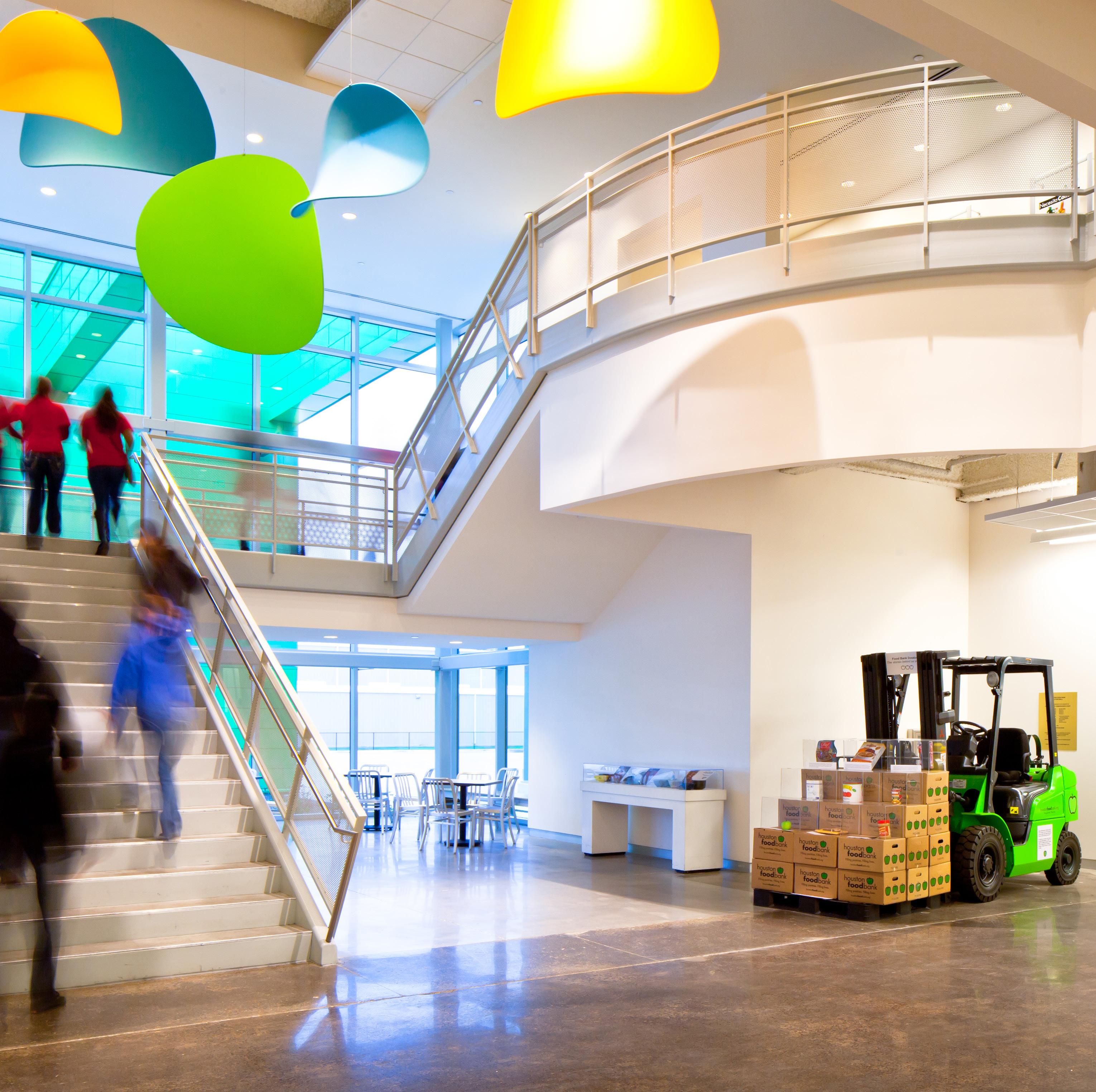 To meet the growing issue of hunger and expand its distribution capacity over three-fold, the Houston Food Bank (HFB) renovated a neglected, thirty year old, “tilt-up” warehouse. The renovation of the 308,000 sf building includes dry and refrigerated warehouses, staff offices, volunteer community rooms and café, social service offices, correction department facilities, food pantry and conference facilities.