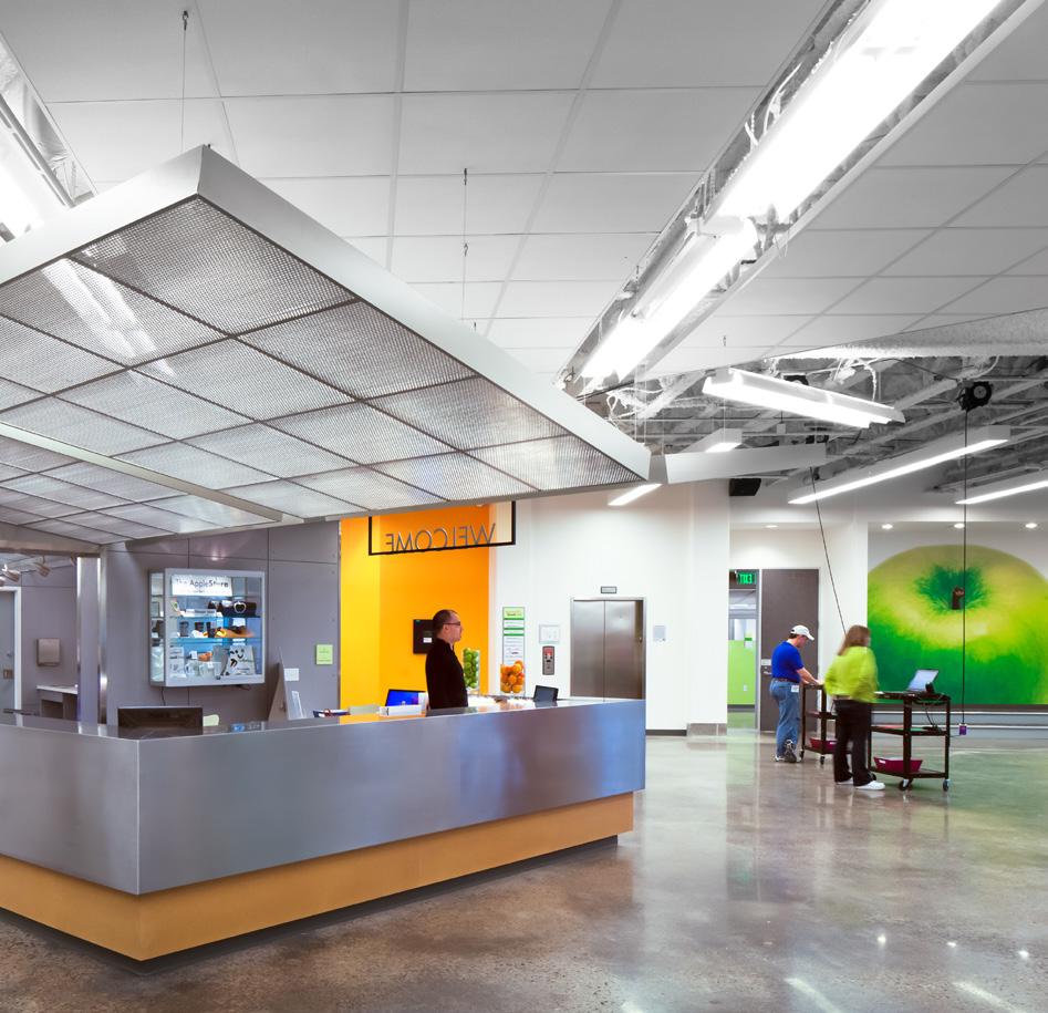 To meet the growing issue of hunger and expand its distribution capacity over three-fold, the Houston Food Bank (HFB) renovated a neglected, thirty year old, “tilt-up” warehouse. The renovation of the 308,000 sf building includes dry and refrigerated warehouses, staff offices, volunteer community rooms and café, social service offices, correction department facilities, food pantry and conference facilities.