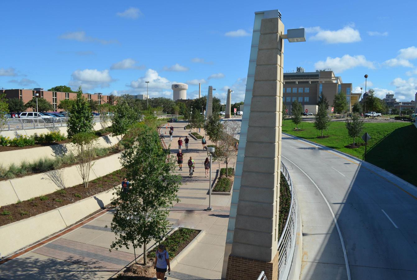 The Wellborn Road Grade Separation project establishes a transportation link for cars, buses, pedestrians and cyclists between the East and West Campuses of TAMU at College Station. To improve the safety of pedestrians and cyclists and provide an inviting and safe environment, expressly designated passageways have been created beneath Wellborn Road and the railroad tracks.