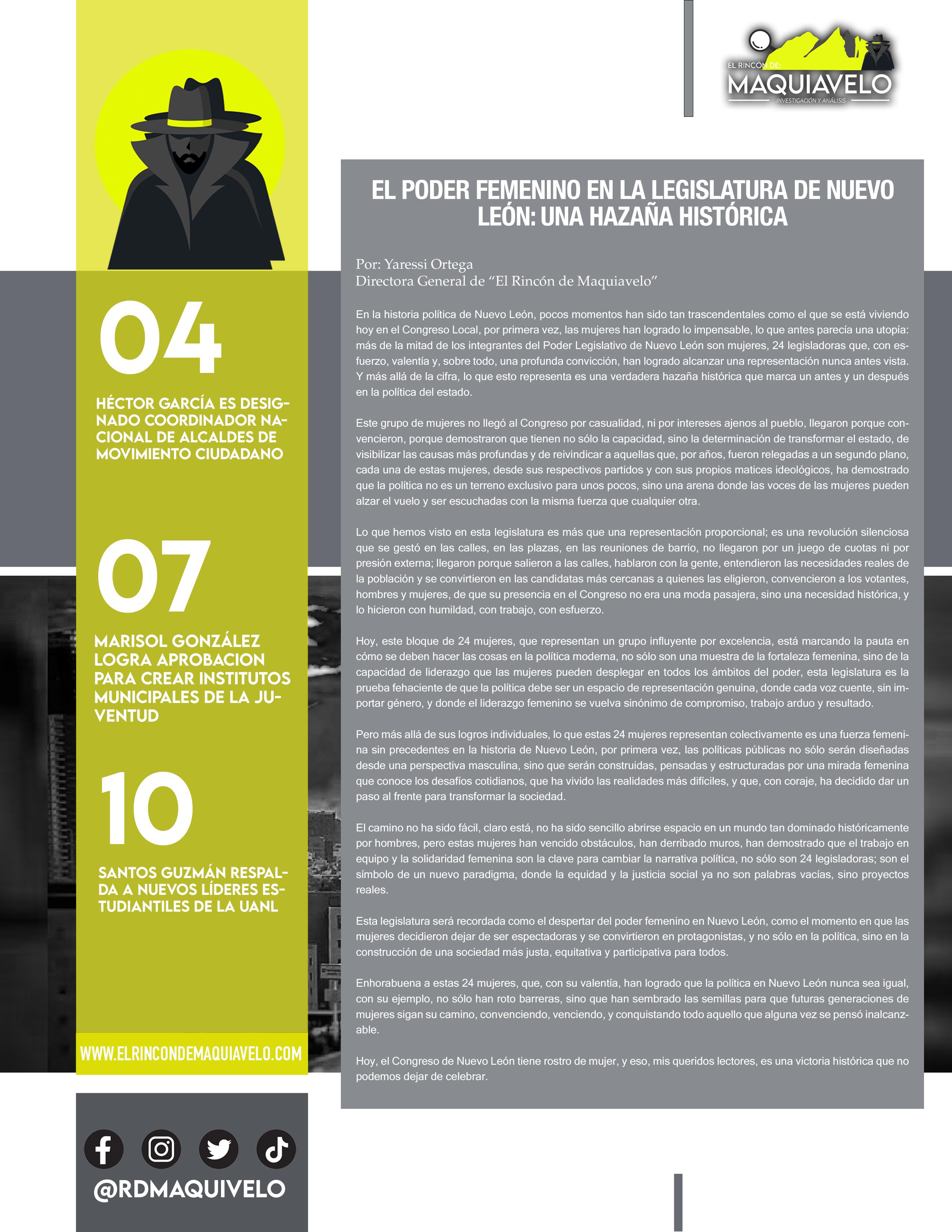 Pero lo más interesante no está en el presente, sino en el horizonte, la misión que carga sobre los hombros no es menor, consolidar el proyecto naranja en 2027, mantener la Gubernatura en manos fosfo fosfo y de paso, lograr que Samuel García,ya sin fuero ni reflector, termine su sexenio con una mayoría legislativa que lo cobije y le evite insomnios.