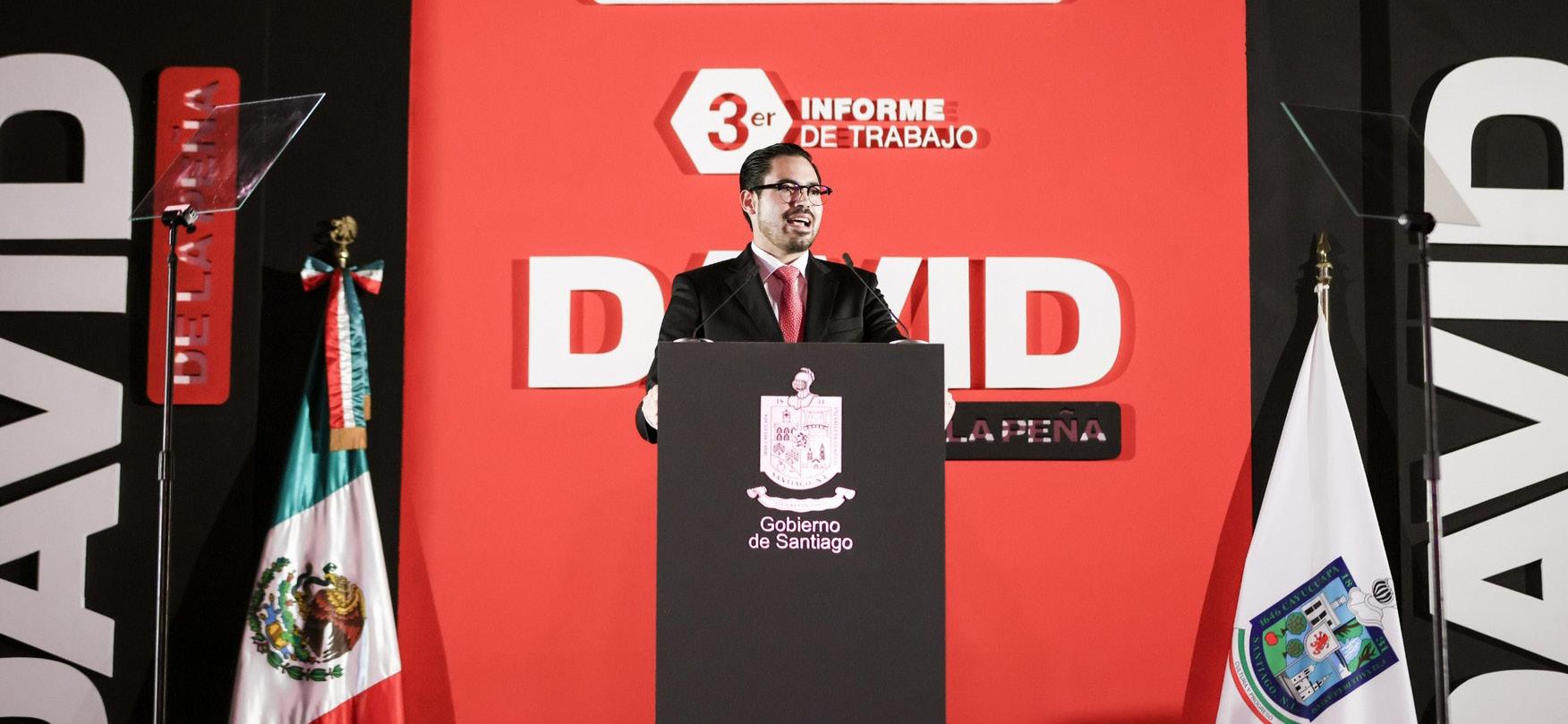 En su Tercer Informe de Trabajo, el Presidente Municipal de Santiago, David de la Peña Marroquín, resaltó los logros de su administración, posicionando a Santiago como un referente estatal en servicios públicos, seguridad, desarrollo social, innovación y manejo administrativo.