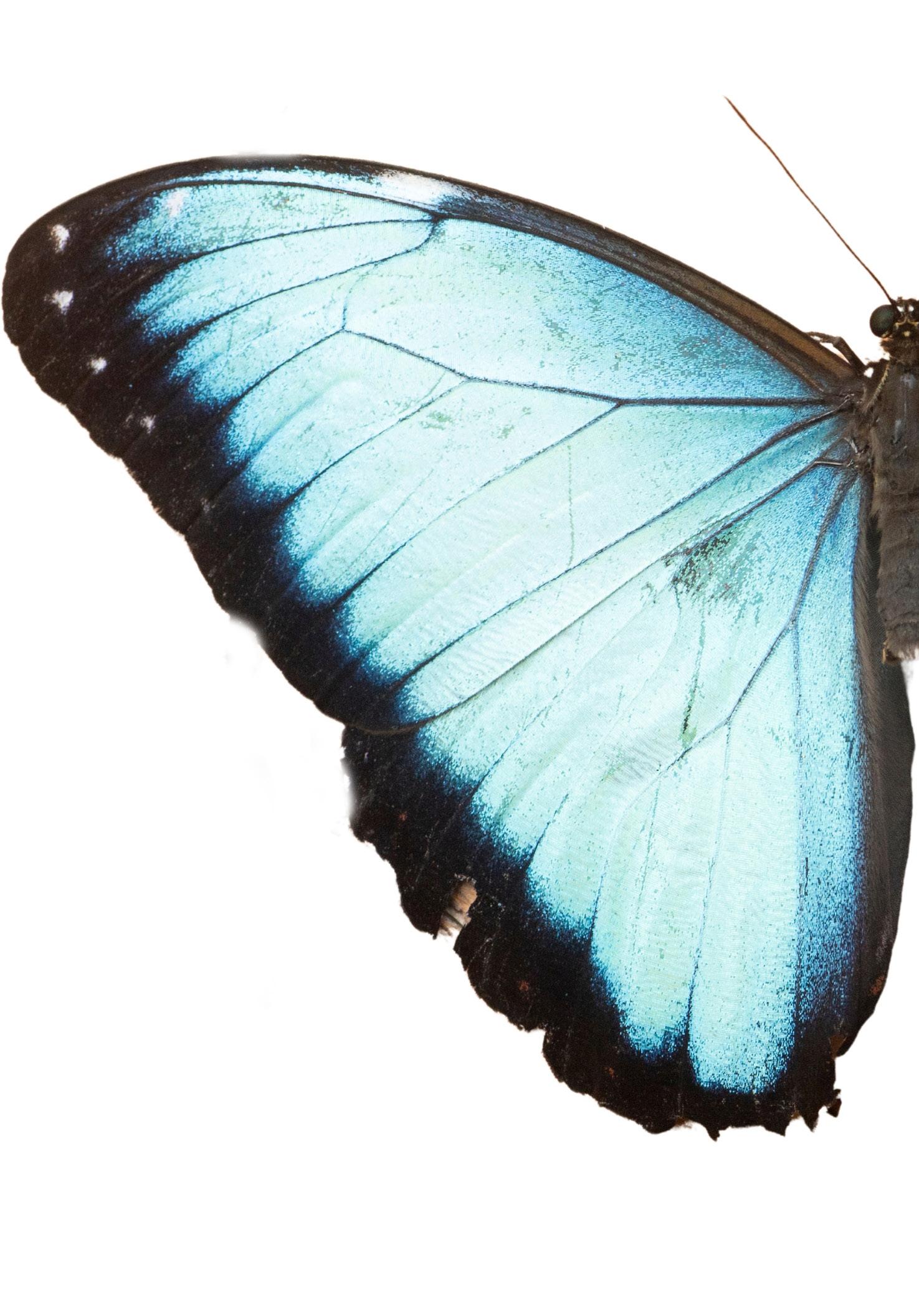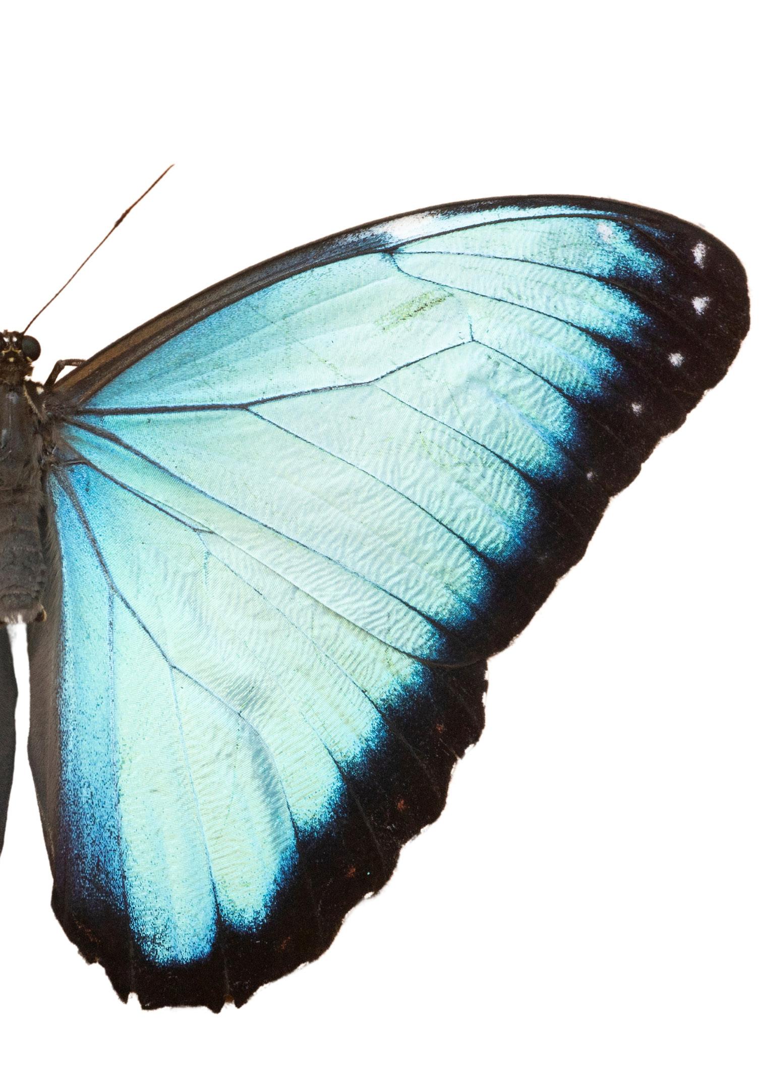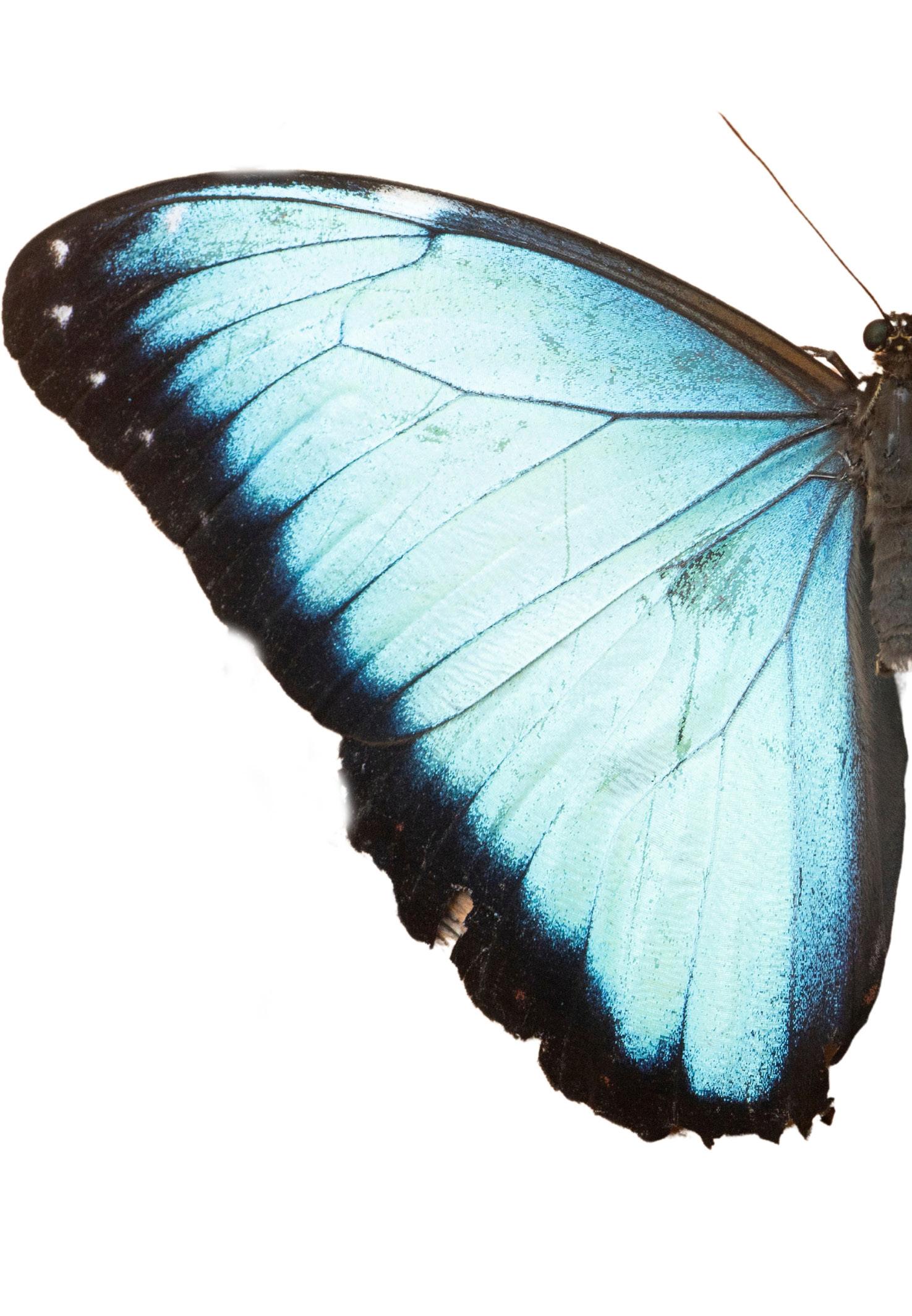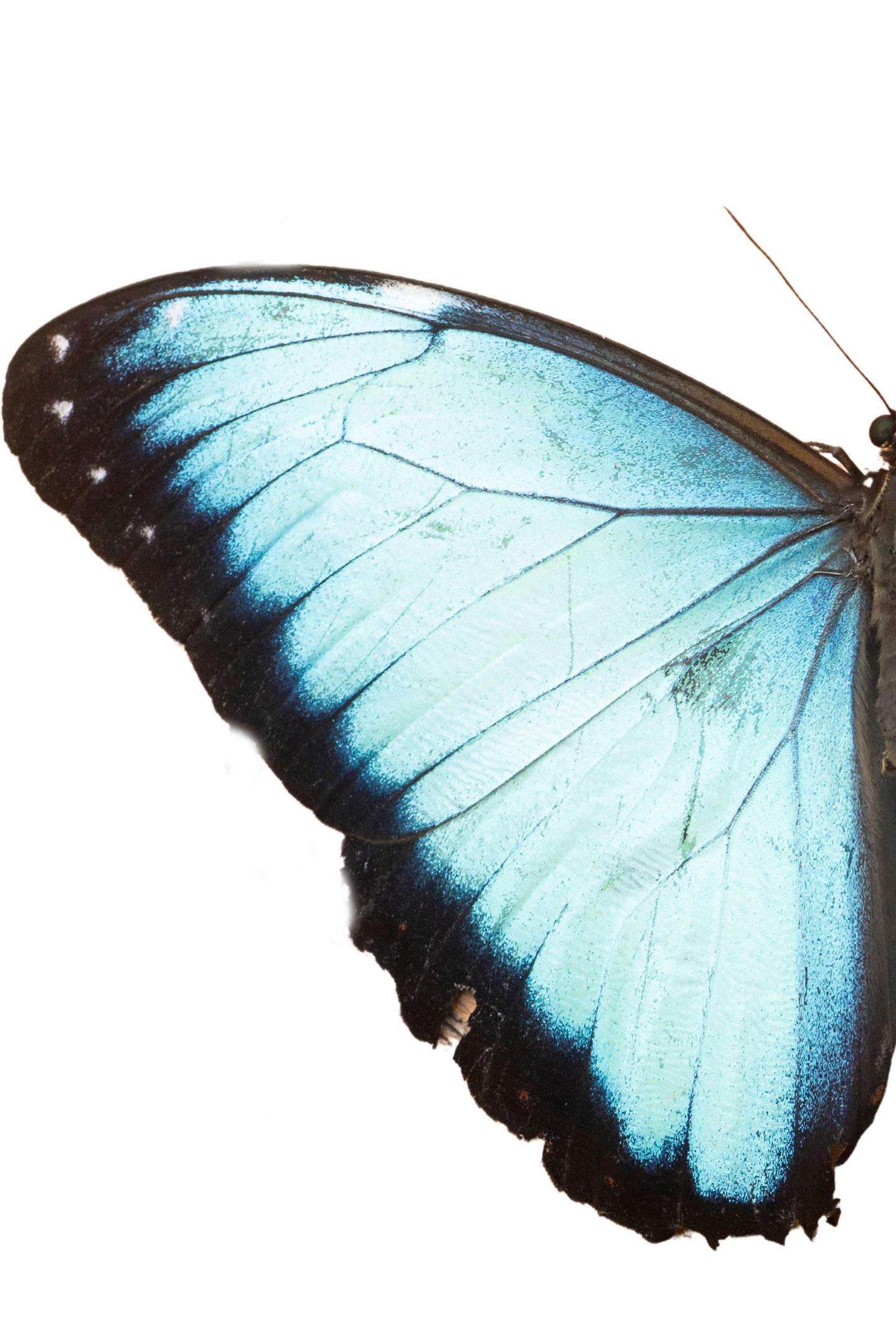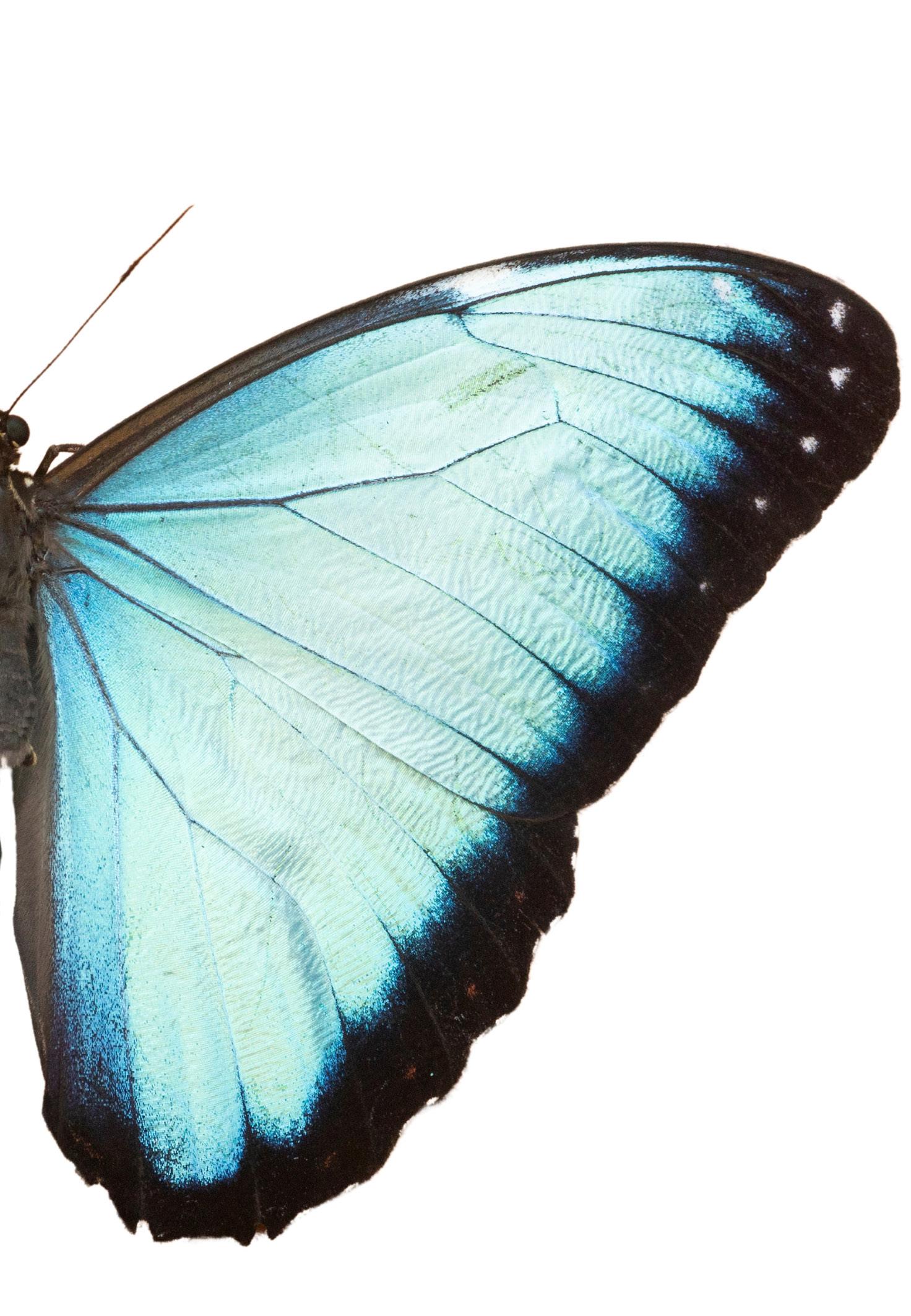 La envergadura de la Morpho Azul va desde los 7 centímetros, existiendo