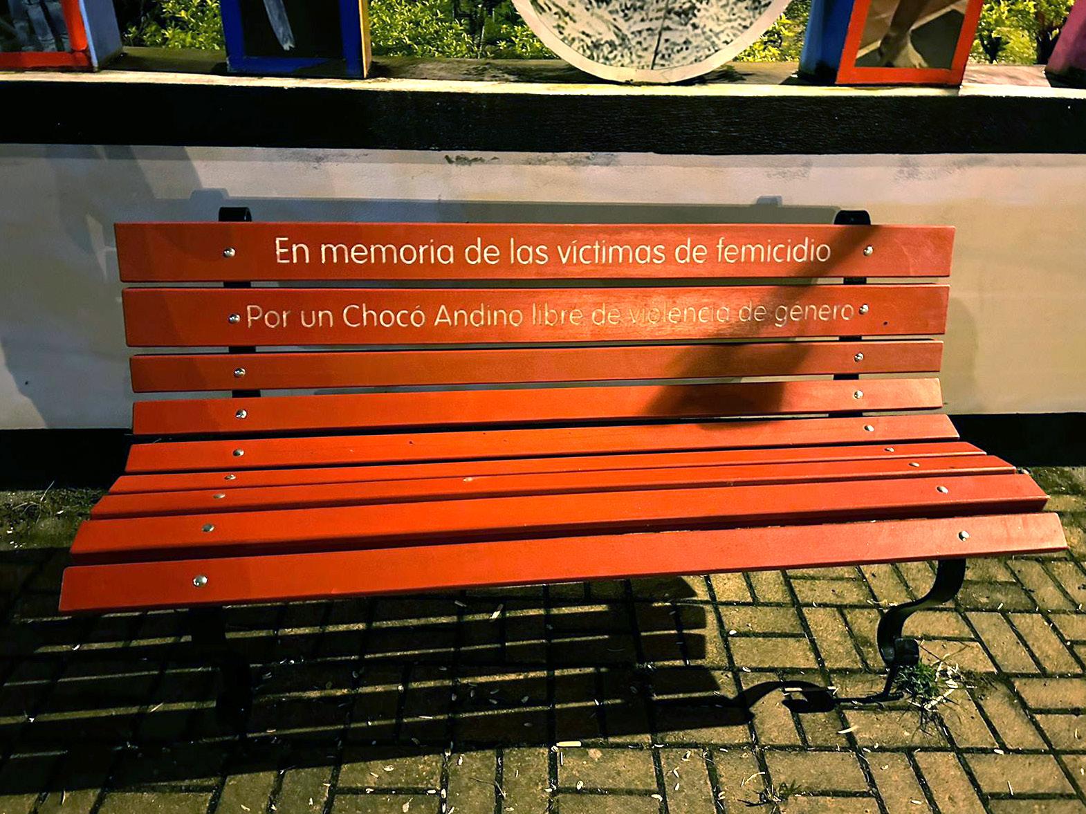 La iniciativa de los bancos rojos surge con la idea de tomarse el espacio público como una forma de posicionar la defensa del derecho a una vida libre de violencia. Se trata de contar con un símbolo efectivo de la lucha contra la violencia machista, llamando la atención de toda la ciudadanía del territorio del Chocó Andino, Bosque Modelo y Reserva de Biósfera.