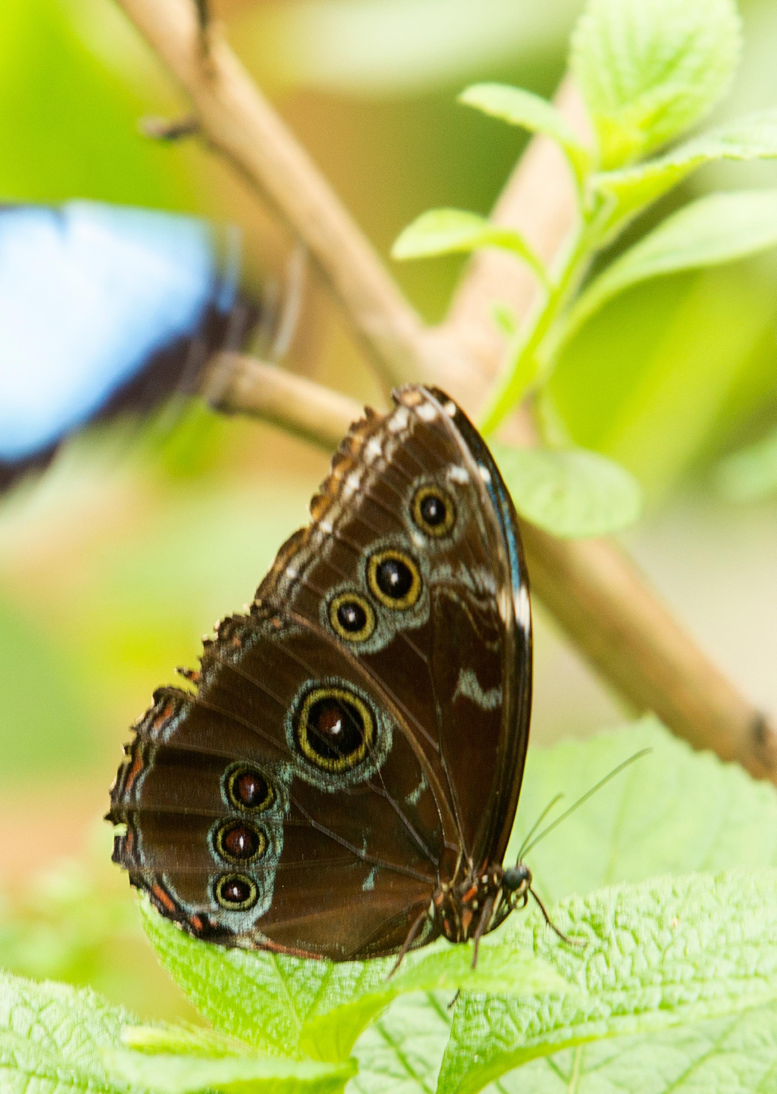 El color azul brillante de sus alas es producido por la difracción de la luz de millones de escamas diminutas. Se cree que este parpadeo que producen sus alas al volar sirve para ahuyentar a los depredadores