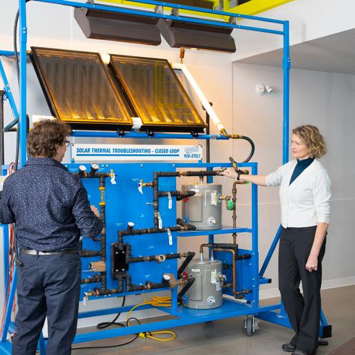 Under the Colleges and Institutes Canada (CICan) Living Lab project, RDP’s Alternative Energy Lab is piloting a demandbased HVAC control strategy to improve energy efficiency and reduce emissions. Currently, the HVAC system runs continuously, consuming 80 per cent of the building’s total energy, estimated at 658 GJ annually. Proposed changes are projected to reduce electricity use by 40 per cent, natural gas consumption by 25 per cent and GHG emissions by 10.5 metric tons of CO2e per year. The project has successfully engaged more than 50 students, 12 faculty members, 15 industry representatives and 7 community partners.