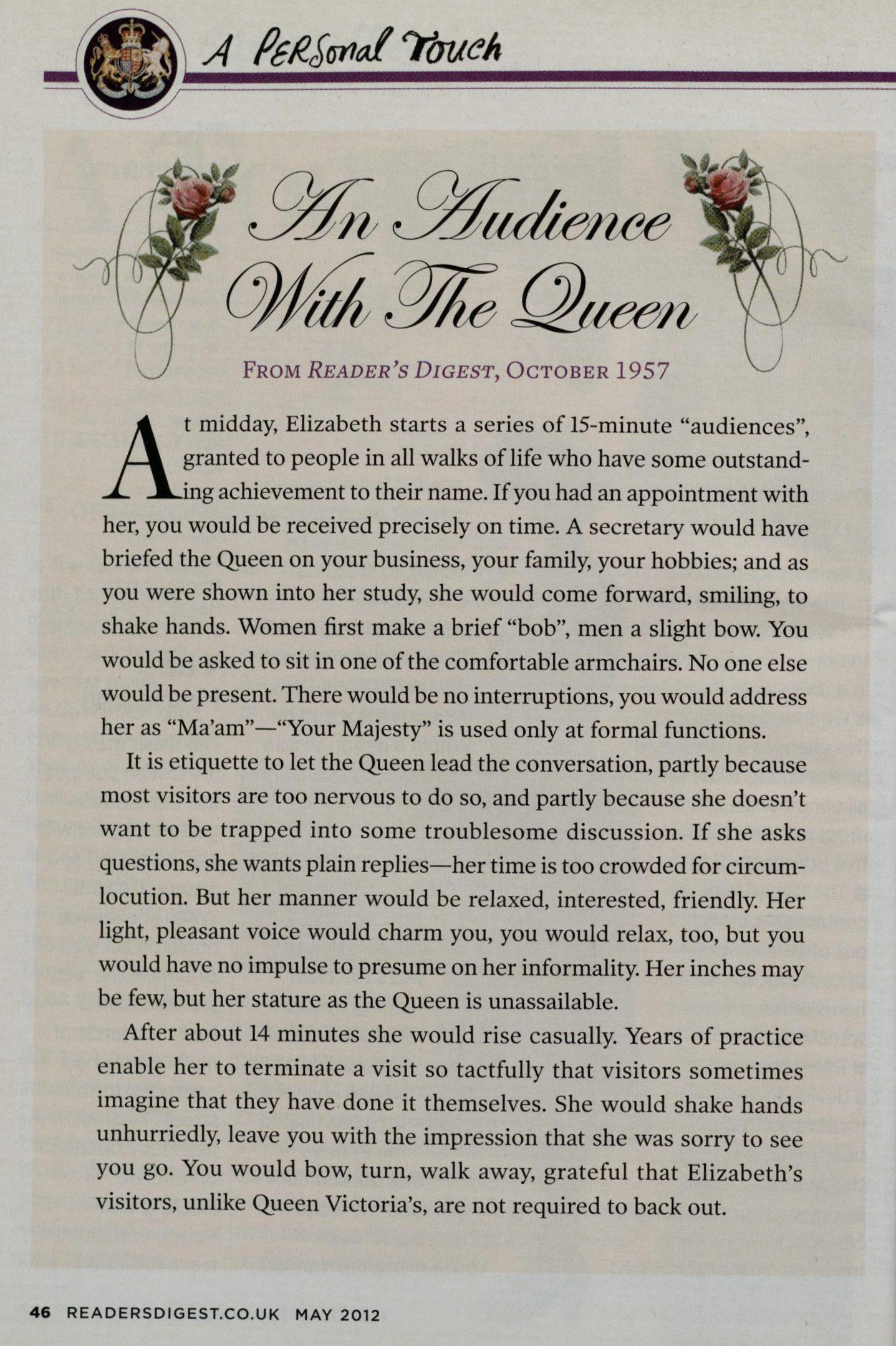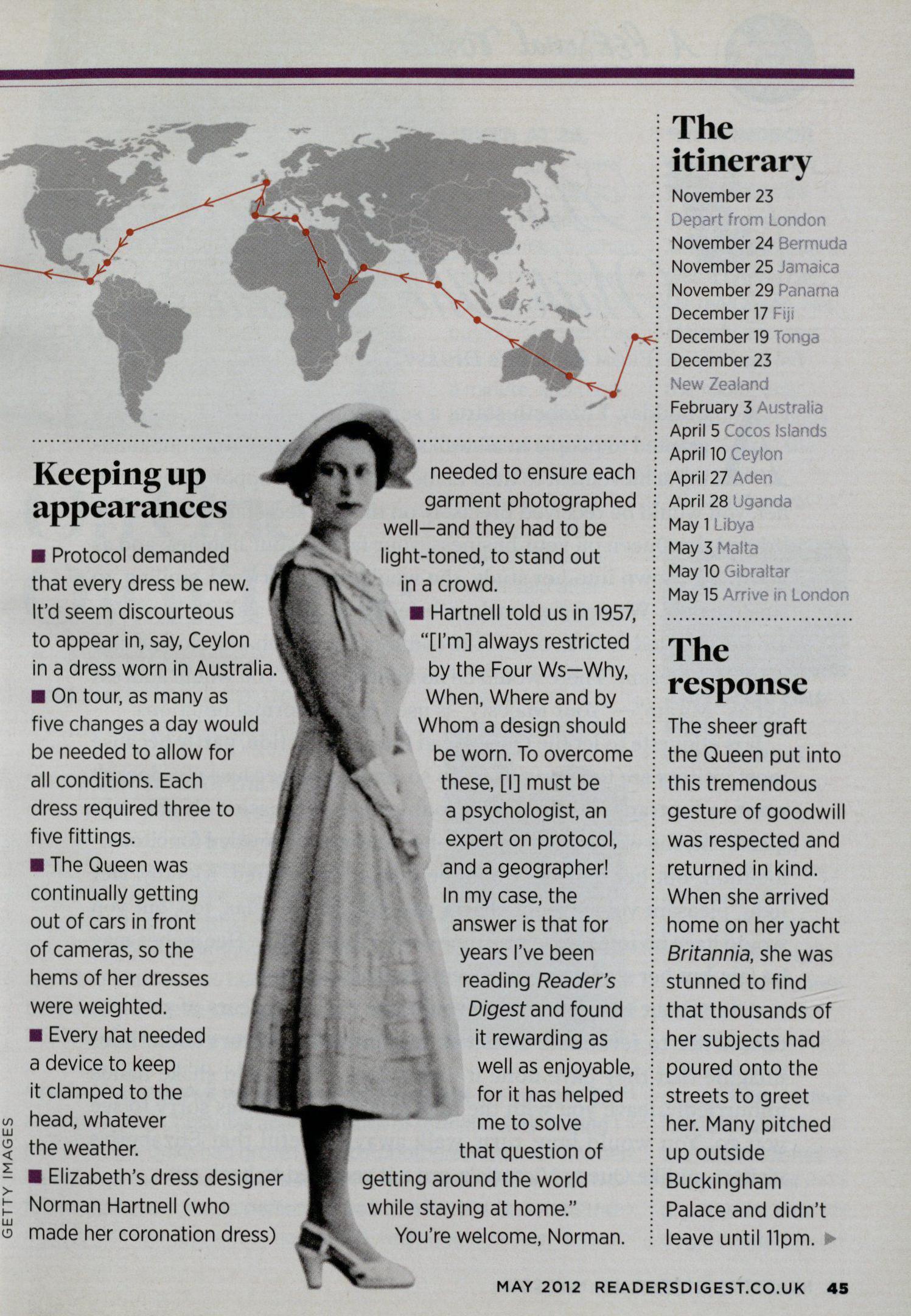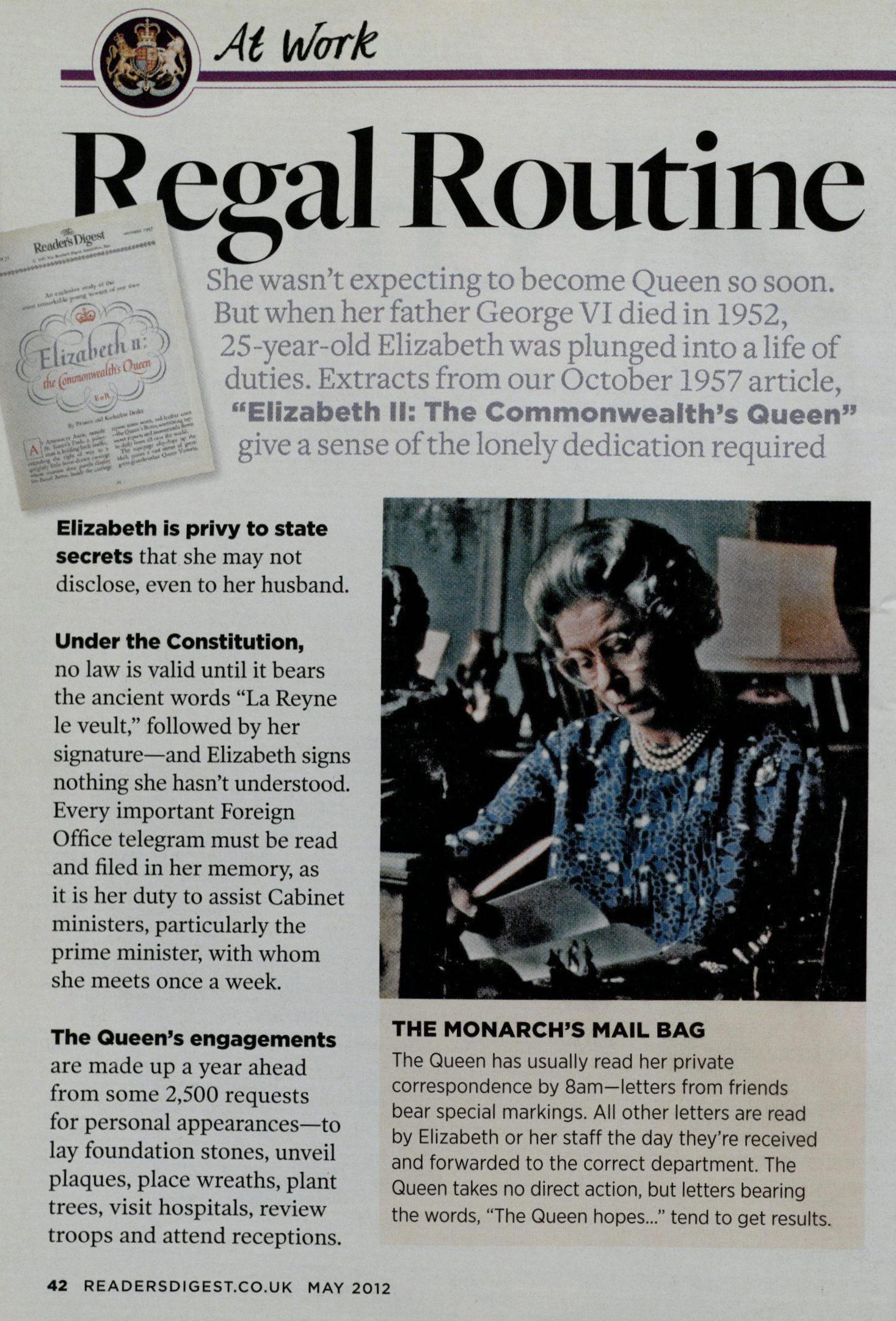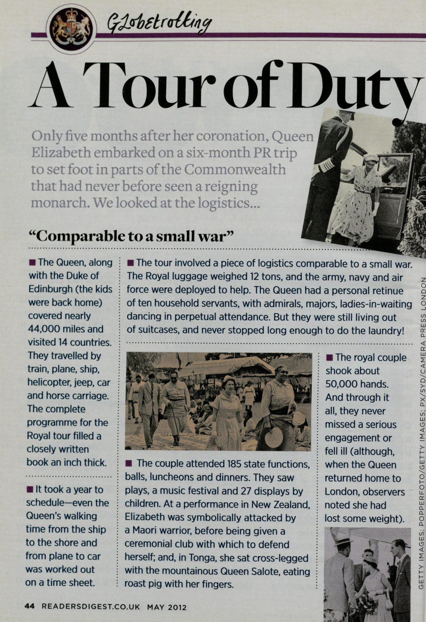 Given that Reader's Digest was first published in the UK back in 1938, it's no surprise that the royal family have made regular appearances in the magazine over the years. So as the Queen wrote to congratulate us on our 50th anniversary in 1988, it seemed only polite to return the favour for her Diamond Jubilee by revisiting some of the great royal stories in our archives. The result? A new Reader's Digest book, full of wonderfully evocative and insightful reports from our various royal correspondents—from the Queen's six-month world tour in 1954, to the story behind the portrait we commissioned of her in 1997. We've picked some cracking highlights from the book to whet your appetite—as you'll discover on p40.