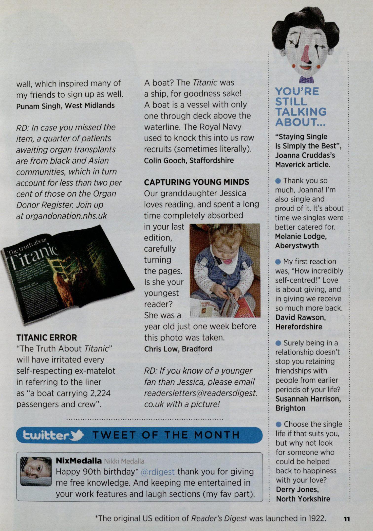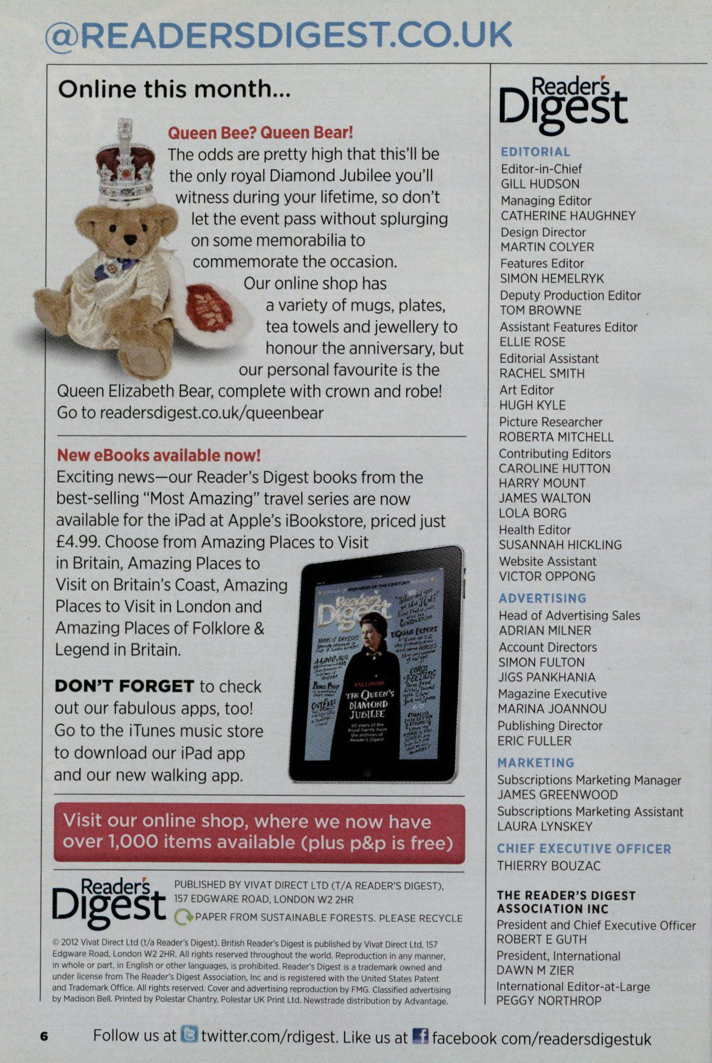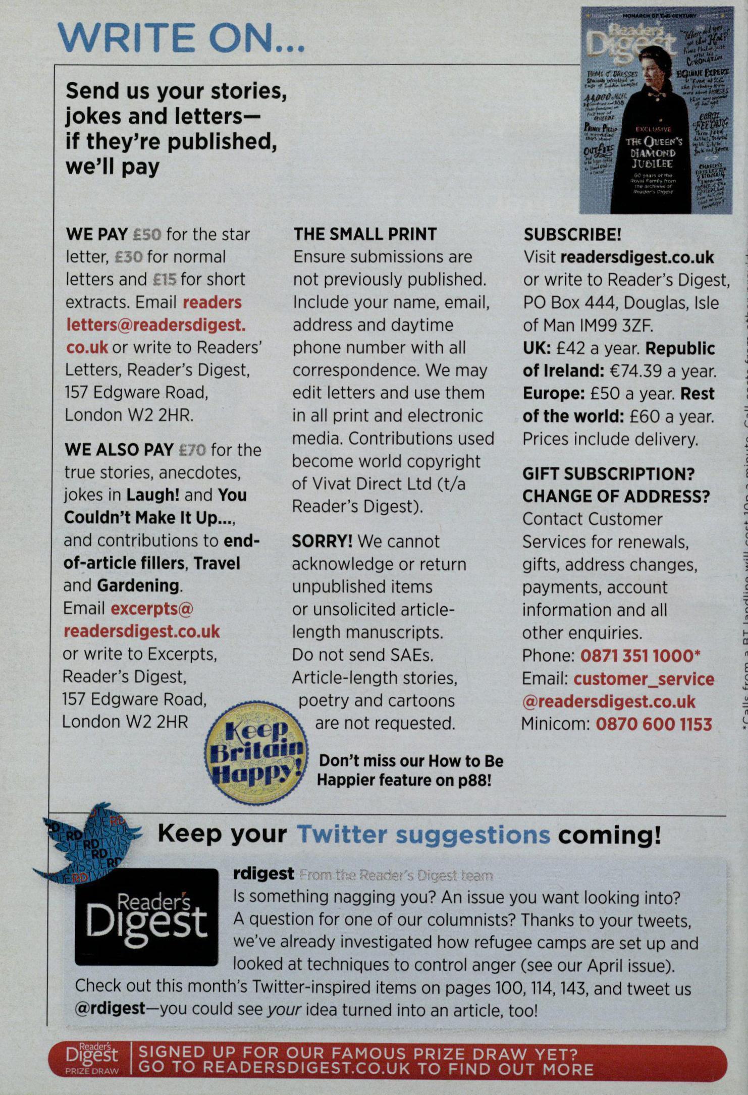160 Follow us at ntwitter.com/rdigest. Like us at facebook com/readersdigestuk