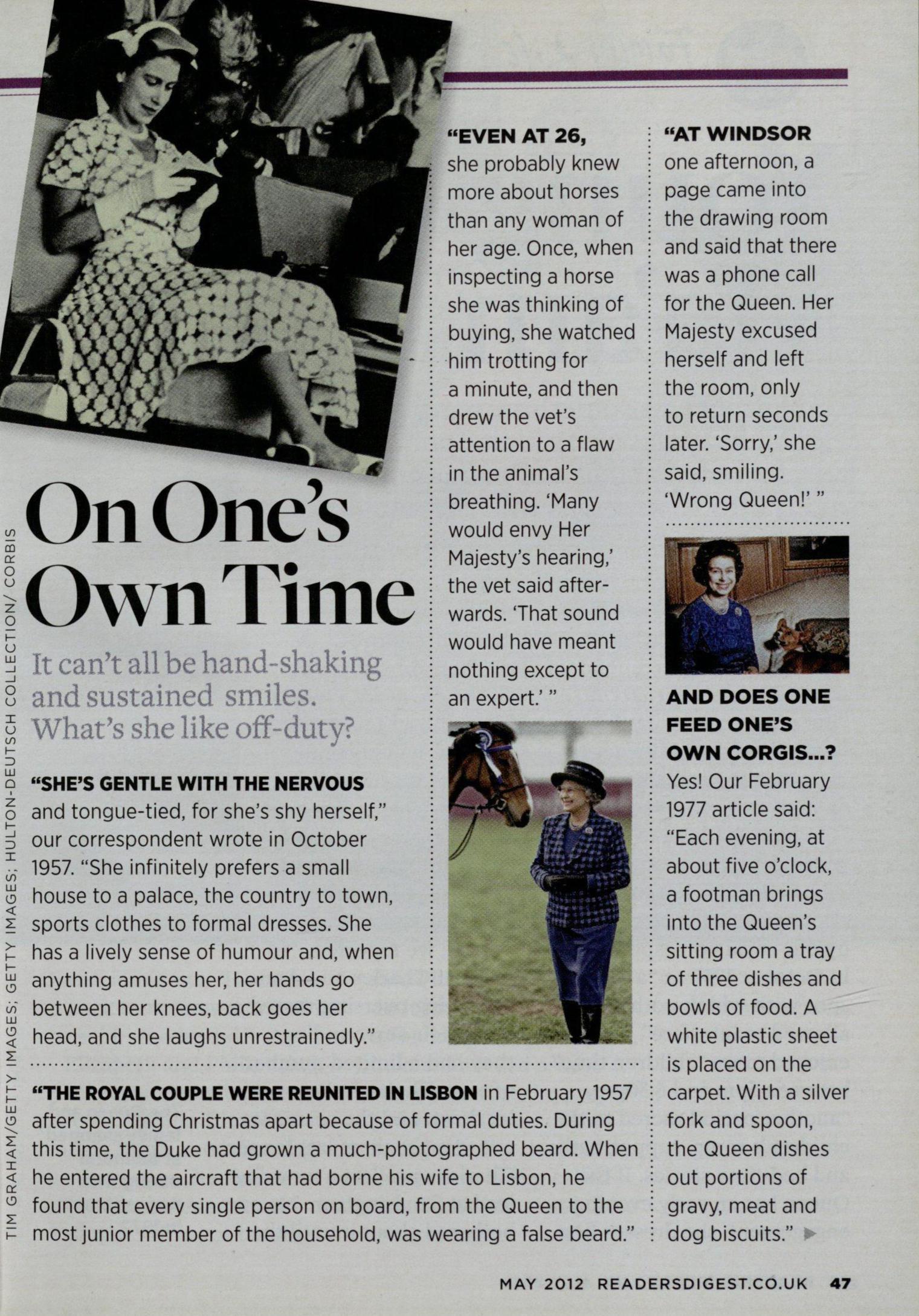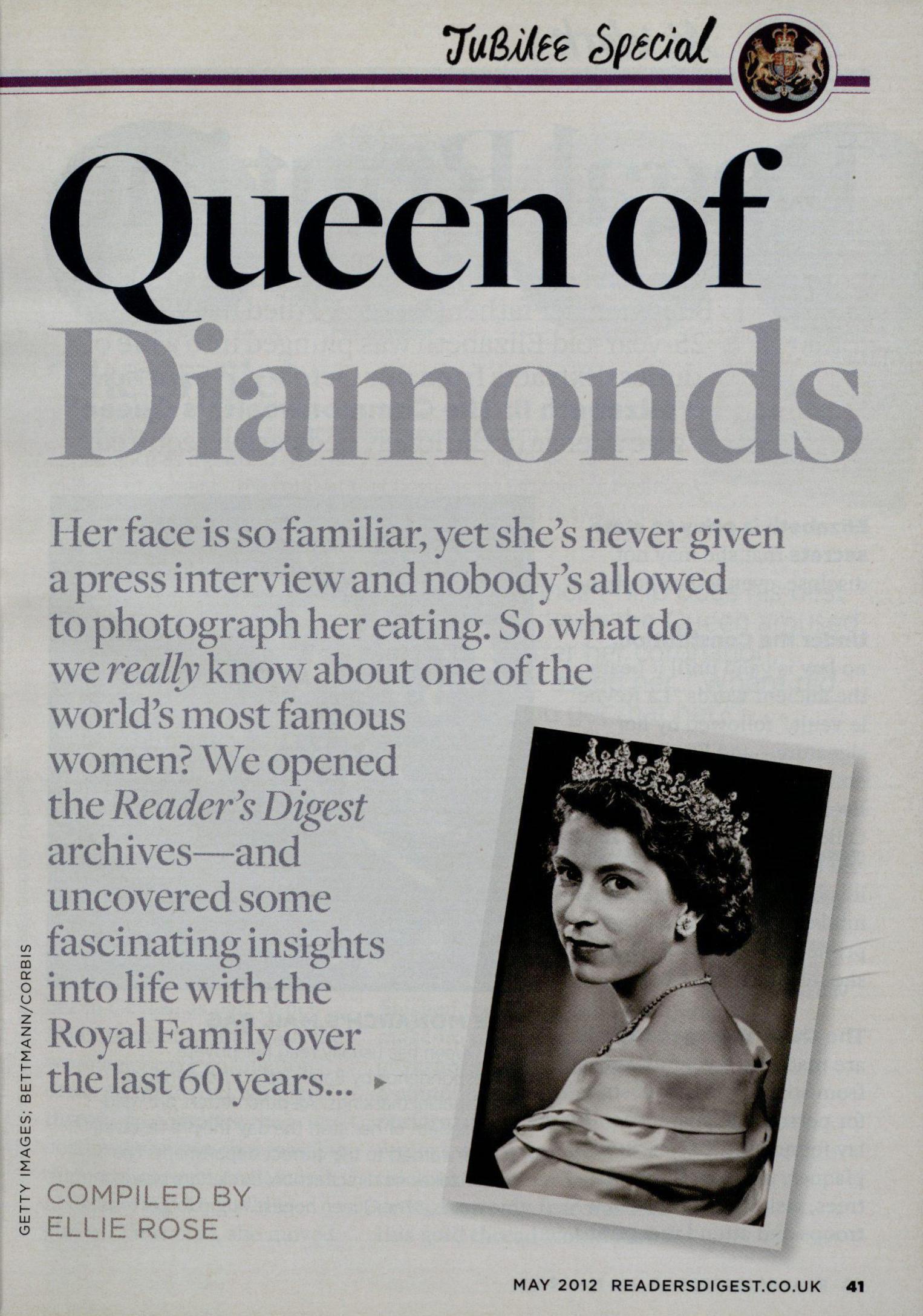 40 Queen of Diamonds How does Elizabeth II juggle her time? What's she like when the cameras are gone? And does she really feed her own corgis?