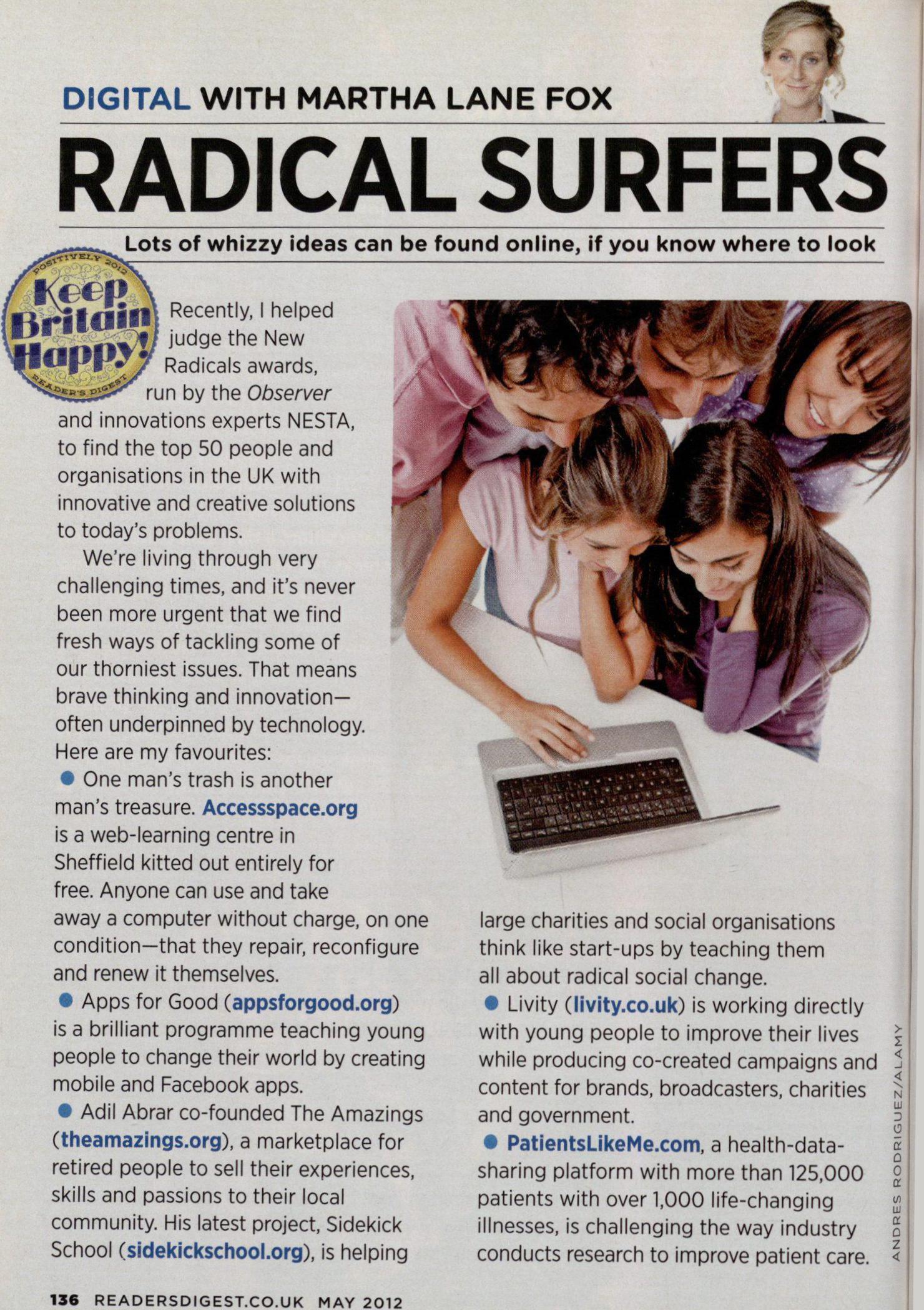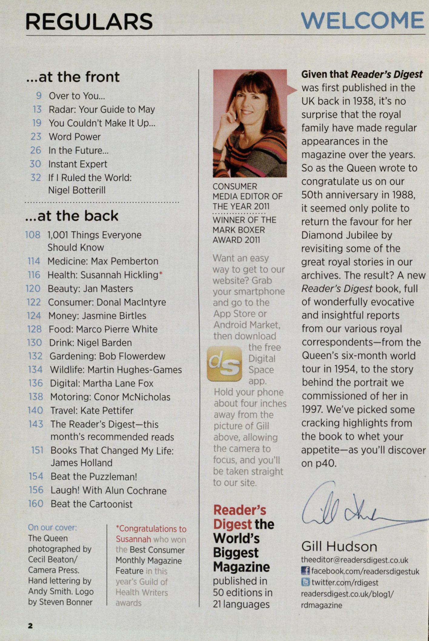 Want an easy way to get to our website? Grab your smartphone and go to the App Store or Android Market, then download the free Digital Space app. Hold your phone about four inches away from the picture of Gill above, allowing the camera to focus, and you'll be taken straight to our site. Reader's Digest the World's Biggest Magazine published in 50 editions in 21 languages