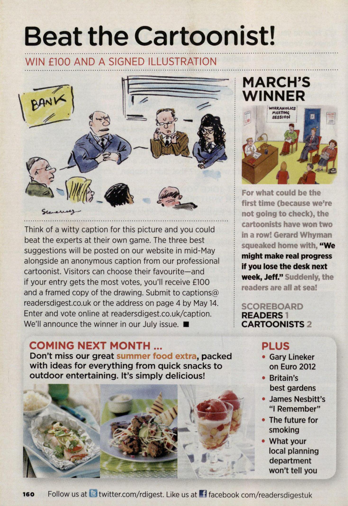 Think of a witty caption for this picture and you could beat the experts at their own game. The three best suggestions will be posted on our website in mid-May alongside an anonymous caption from our professional cartoonist. Visitors can choose their favourite—and if your entry gets the most votes, you'll receive £100 and a framed copy of the drawing. Submit to captions readersdigest.co.uk or the address on page 4 by May 14. Enter and vote online at readersdigest.co.uk/caption. We'll announce the winner in our July issue. ■
