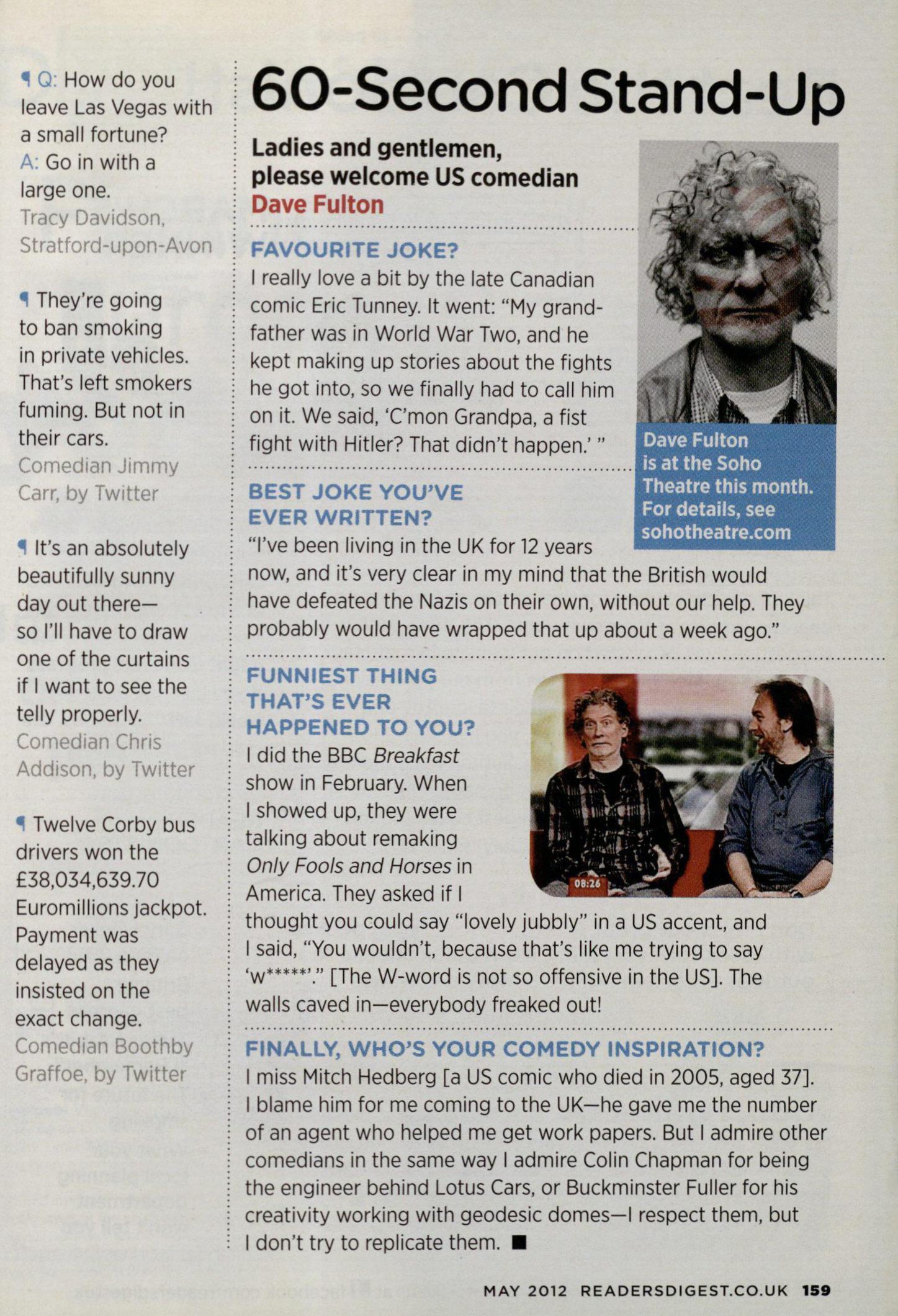 JOKE WE PUBLISH. EMAIL EXCERPTS@ READERSDIGEST.CO.UK OR GO TO FACEBOOK.COM/READERSDIGESTUK 156 READERSDIGEST.CO.UK MAY 2012