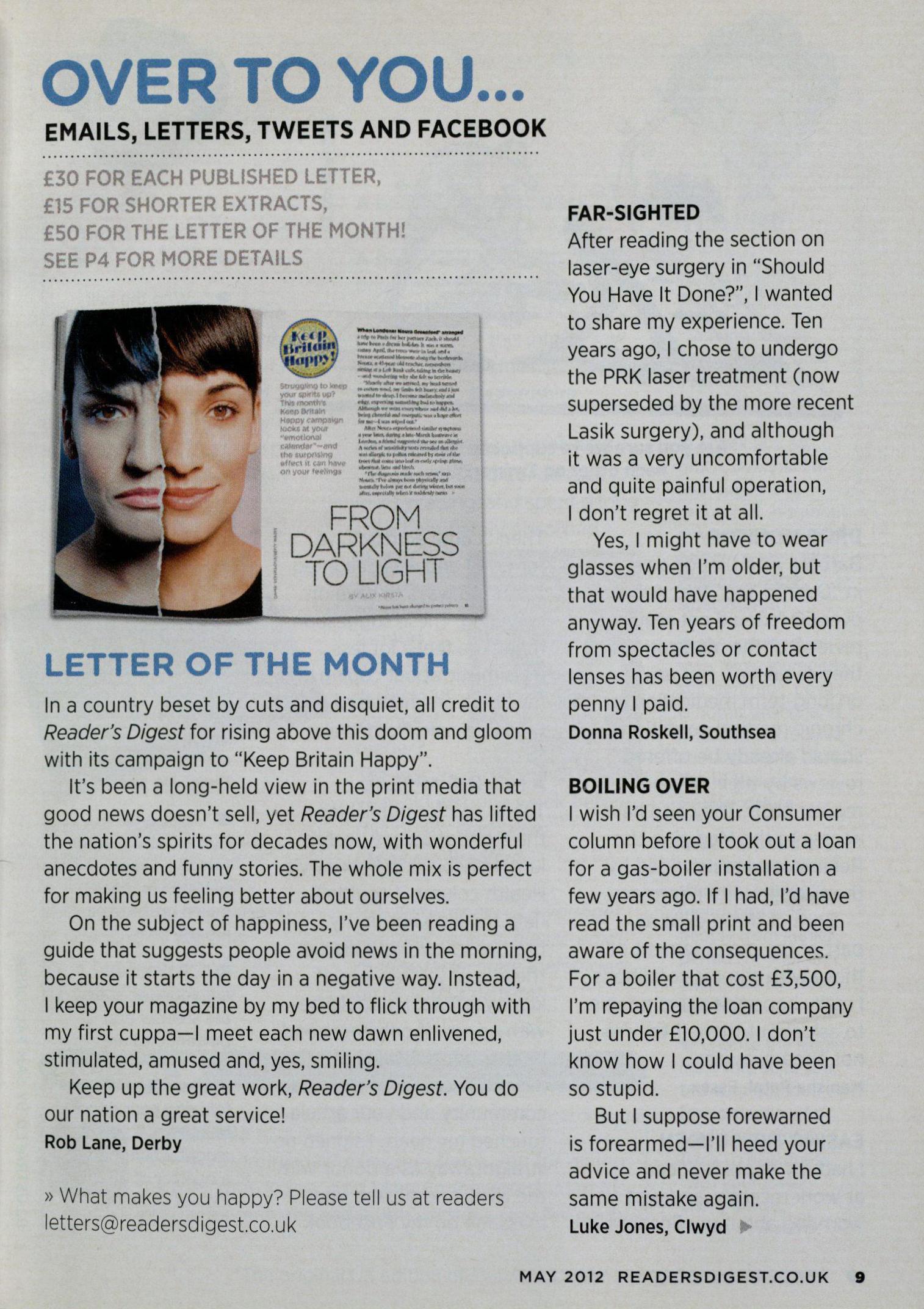 WE PAY £50 for the star letter, £30 for normal letters and £15 for short extracts. Email readers letters@readersdigest. co.uk or write to Readers' Letters, Reader's Digest, 157 Edgware Road, London W2 2HR.