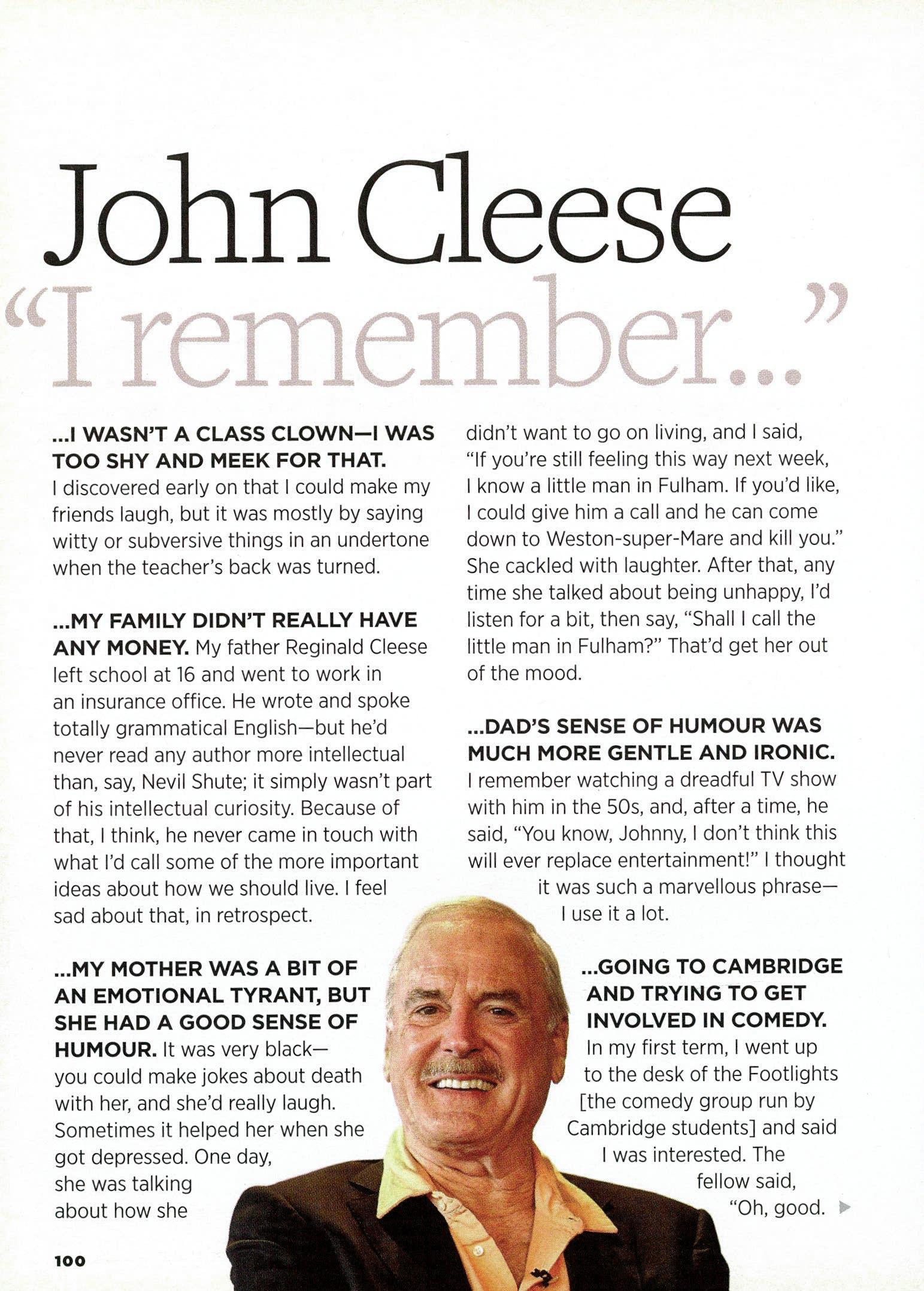 100 John Cleese: "I Remember"The legendary Python discusses his first love, his childish side and the trouble with fame