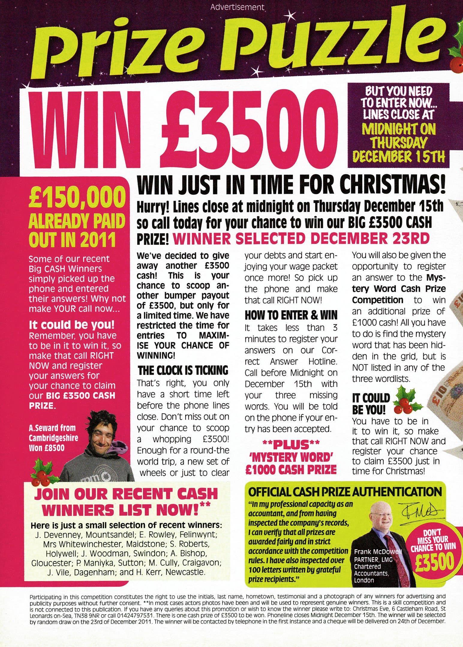 You have to be in it to win it, so make that call RIGHT NOW and register your chance to claim £3500 just in time for Christmas!