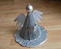 The simple act of folding each page of a Reader’s Digest into three triangles turns the book into a cone; apply wings, arms holding a book, and a head to make an angel; top it off with silver spray and tinsel, and you have a Reader’s Digest angel!