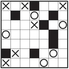 Put a nought (O) or a cross (X) in each cell so that there are no lines of three (OOOs or XXXs) in any direction.