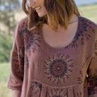 B. Each of the flower’s petals rotates clockwise by 120 degrees, then a new petal is added at the bottom.