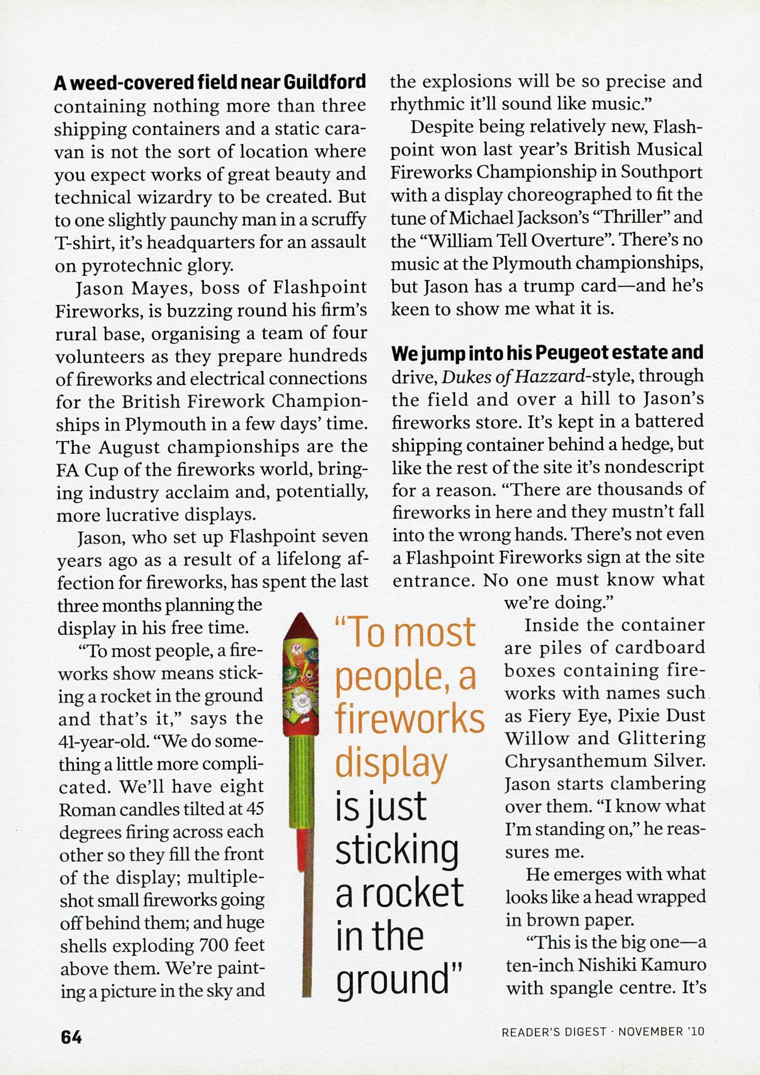 M 2010 Vivat Direct Ltd OM Reader's Digest). British Reader's Digest is published by Vivat Direct Ltd, 157 Edgware Road, London W2 2H R. All rights reserved throughout the world. Reproduction in any manner, in whole or part, in English or other languages, is prohibited. Reader's Digest is a trademark owned and under license from The Reader's Digest Association, Inc and is registered with the United States Patent and Trademark Office. All rights reserved. Reproduction by FMG. Printed by Polestar Chantry, Polestar UK Print Ltd. Newstrade distribution by Advantage.