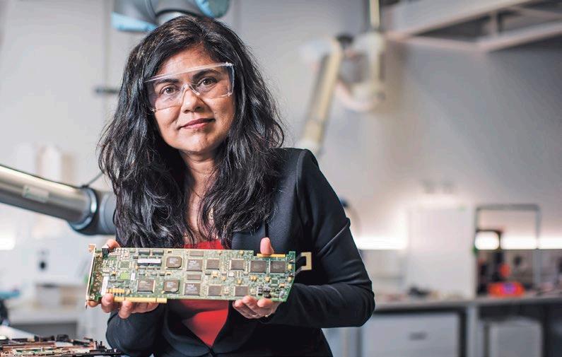 computer circuit boards into metal alloys such as copper and tin. Her second, operational since 2019, repurposes scrapped plastics into filaments for use in 3-D printers. Both sites are funded by UNSW and are housed within the university.