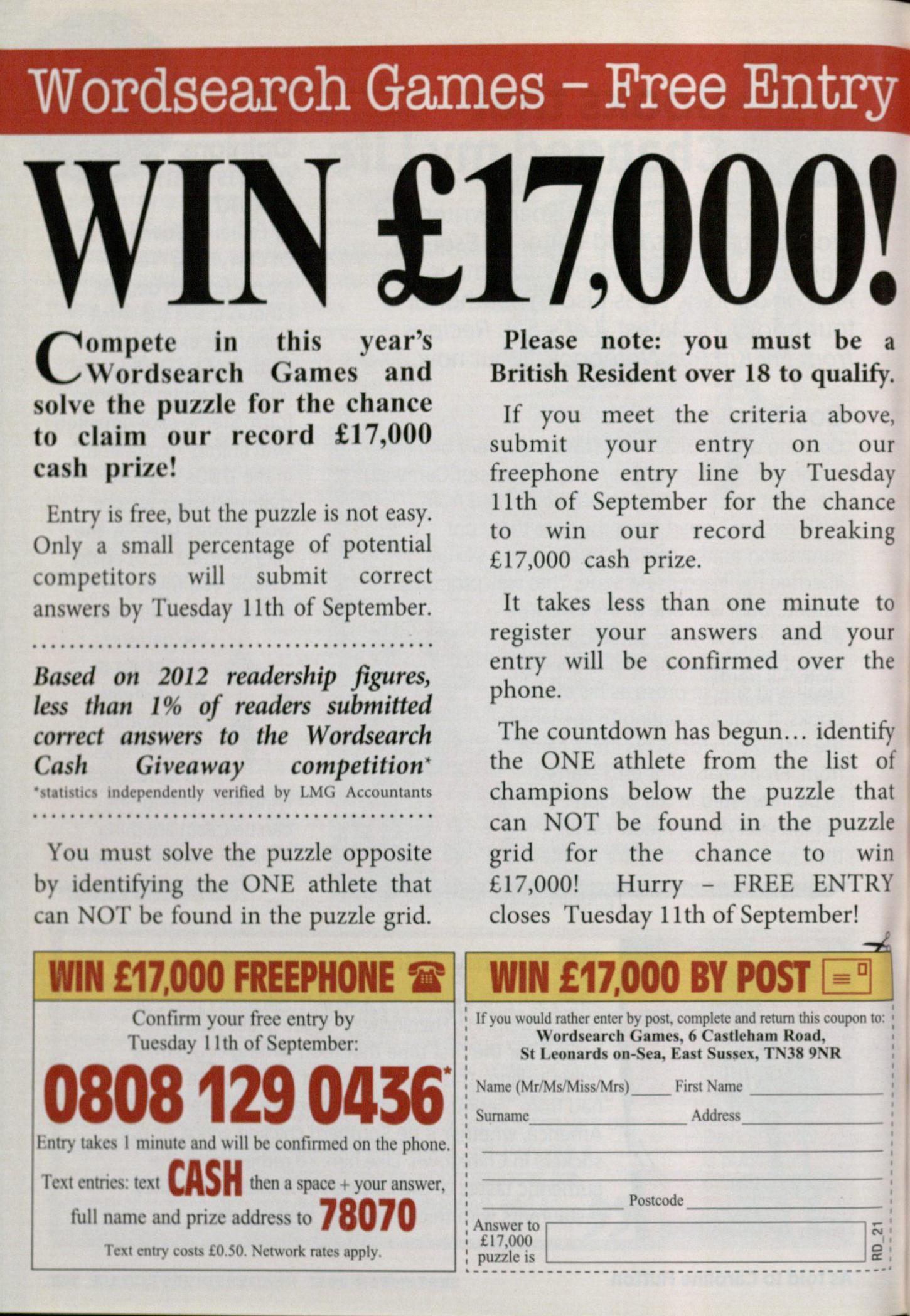 your FREE QUOTATION, complete and return the coupon today - and you could win £5,000.