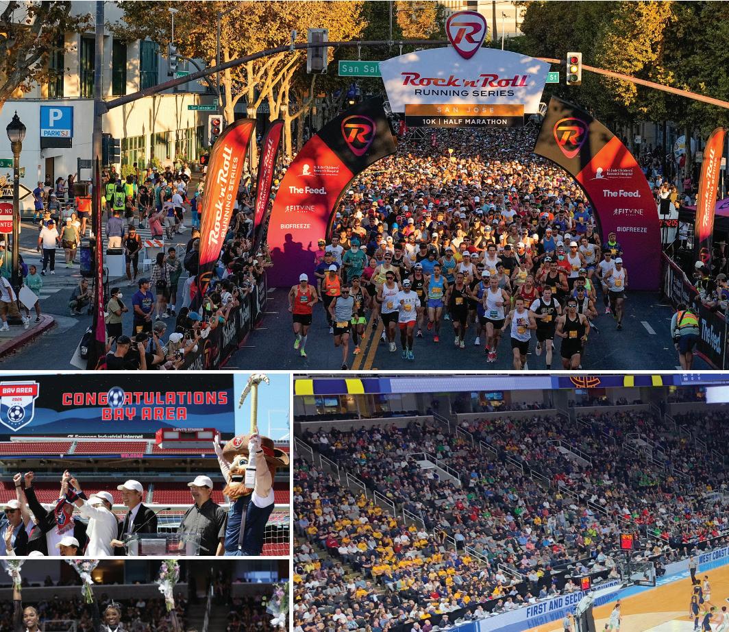 Pictured clockwise from top: Chairman of the Board for San Jose Sports Authority Charlie Faas with Athlete Leader Stephanie; Kerri Walsh Jennings with Athlete Leader Nassreen; Tara VanDerveer with Athlete Leader Stephanie; Robert Guerrero with Athlete Leader Jenni; Mike Holmgren with Athlete Leader Heather