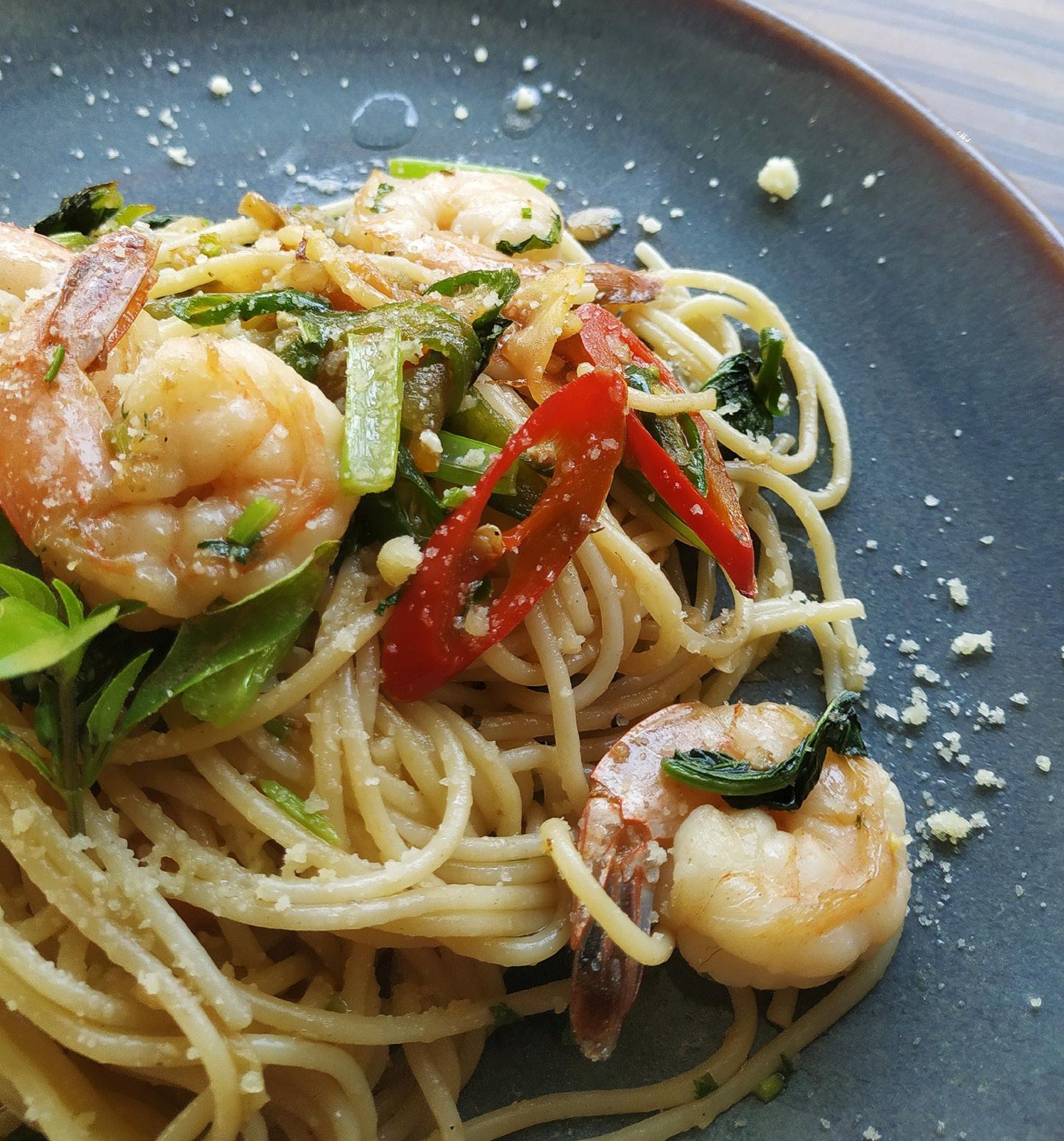 Garlic and prawn pasta