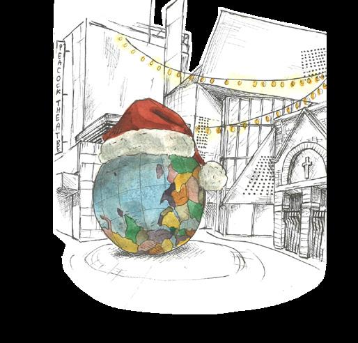 I don’t think I’m the only one who feels like this. On 28 November, a crowd gathered outside the Centre Building to watch as the Christmas tree lights were switched on. e momentary joy felt by the cold students su ering under the weight of deadlines was tangible. And in that moment, at least for a second, we all stood still and smiled.