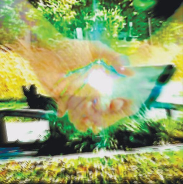 ere is a video on Instagram of Hooky performing in an art gallery in Texas, which is one of the most euphoric things I have ever seen. ey are playing a song called “Goodbye”, the shimmering outro to their 2024 album Mirage, and the crowd is going insane. e name of the festival they’re at, ‘THANKS4EXISTING’, is ashing on the wall behind them. Performing as a duo with just a single chorused-out Stratocaster and a ashing sampler, Hooky tears the room apart when the drums come in.