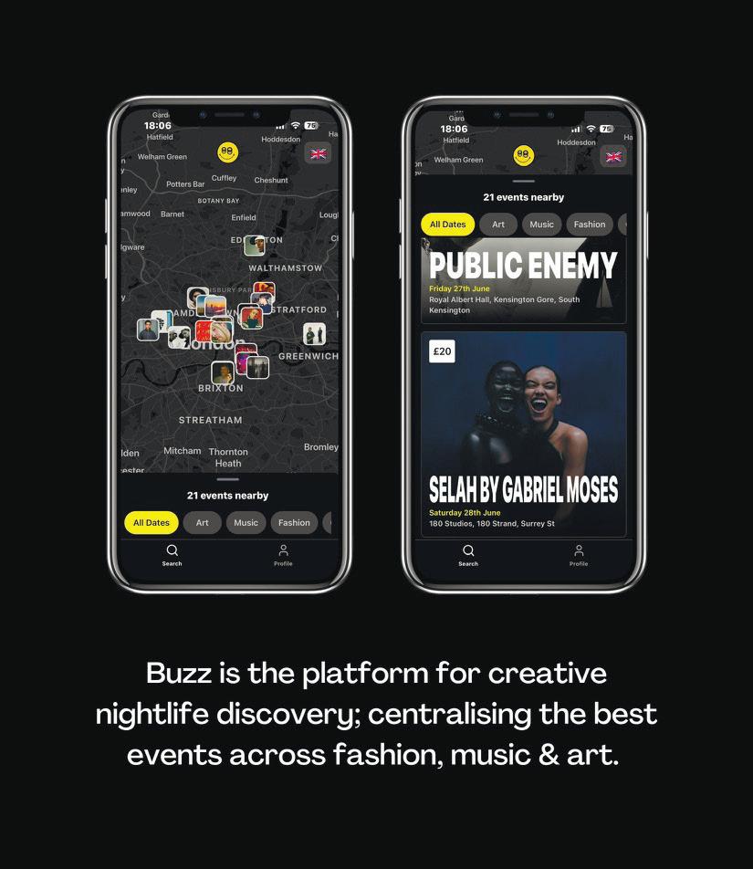 Buzz has moved away from generic events and uni party hosting and instead caters to people who want to go to creative events, from popups to listening parties to brand activations. It is increasingly clear that clubbing culture is not so enjoyable when one double vodka lemonade might set you back £12 or more. It is also clear that brands are funnelling more money into these types of activation events than ever, with Nike and Migos being two examples James mentioned in our conversation. Buzz is there to connect those two realities. Instead of having to follow the brand on Instagram or know someone who is going to the event already, you download Buzz. It is almost like a modern TimeOut magazine.