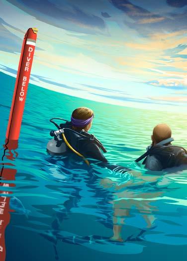Das Paar tauchte auf und blies zuerst seine Tarierwesten auf und dann die Oberflächenmarkierungsbojen: lange Röhren, die zur Sichtbarmachung aus dem Wasser ragen.