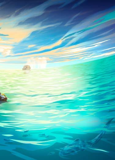Nathan dachte an die Geschichten, die er über Taucher gehört hatte, die von ihren Booten zurückgelassen worden waren. Sie endeten meist schlimm. Im Laufe der nächsten 30 Minuten wurde das Boot kleiner und kleiner. Dann verschwand es hinter dem Horizont. Und einfach so waren Kim und Nathan allein – kilometerweit vom Ufer entfernt, mit nichts als Wasser, so weit sie in jede Richtung sehen konnten.