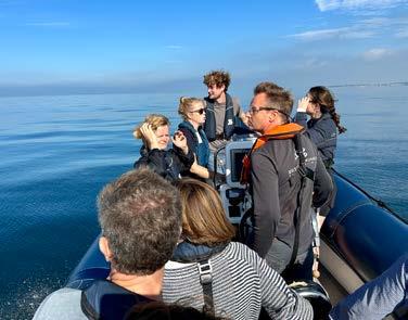 Katrine Larsen manövriert das Schlauchboot zwischen den Freizeitjachten hindurch, hinaus aus dem Hafen von Helsingör. Achtern hält Jeppesen einen Vortrag für die zwölf Gäste.