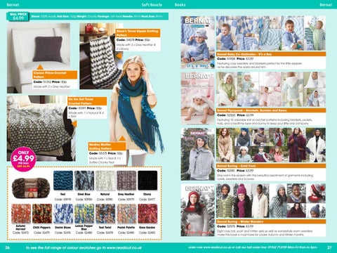 Code: 52575 Price: £3.99 Eight cosy hat, scarf and mitten sets as well as wonderfully warm sweaters make this book a must-have for cooler Autumn and Winter months.