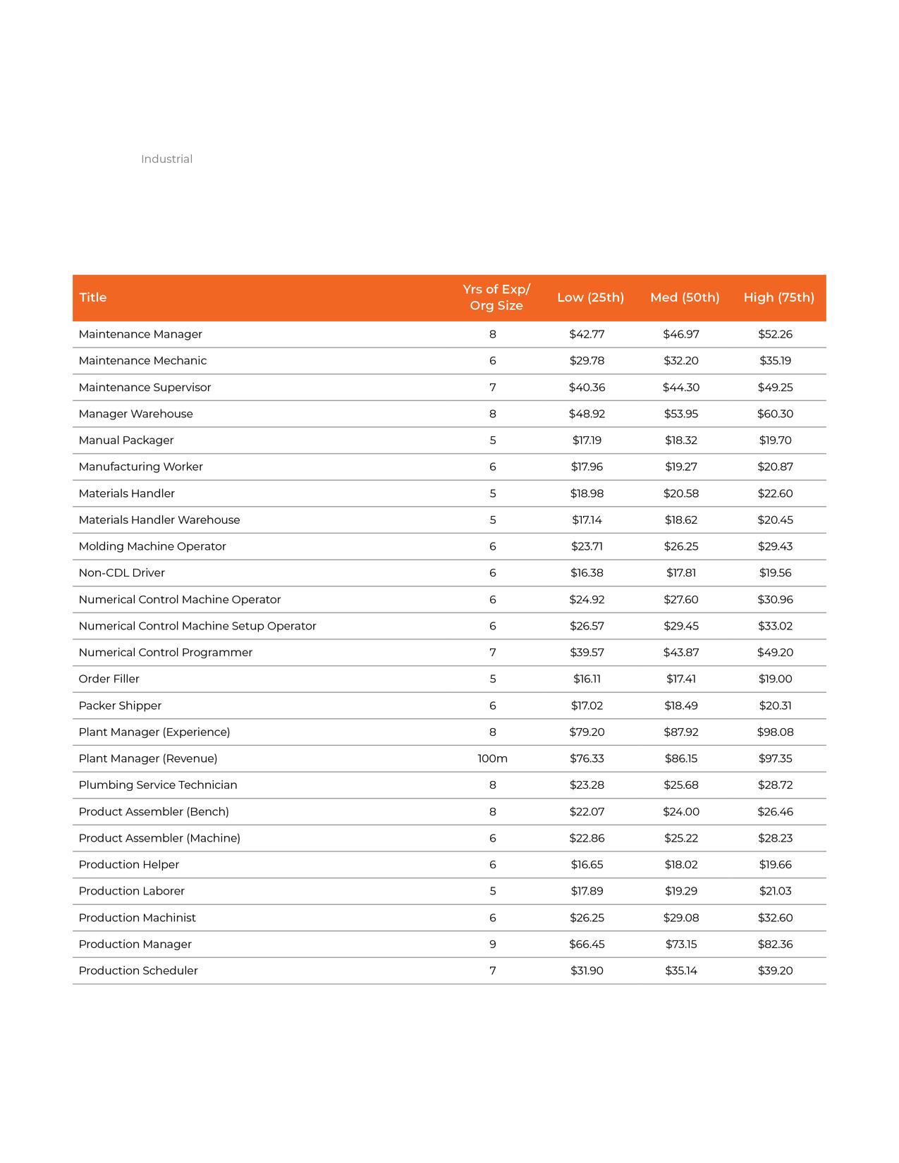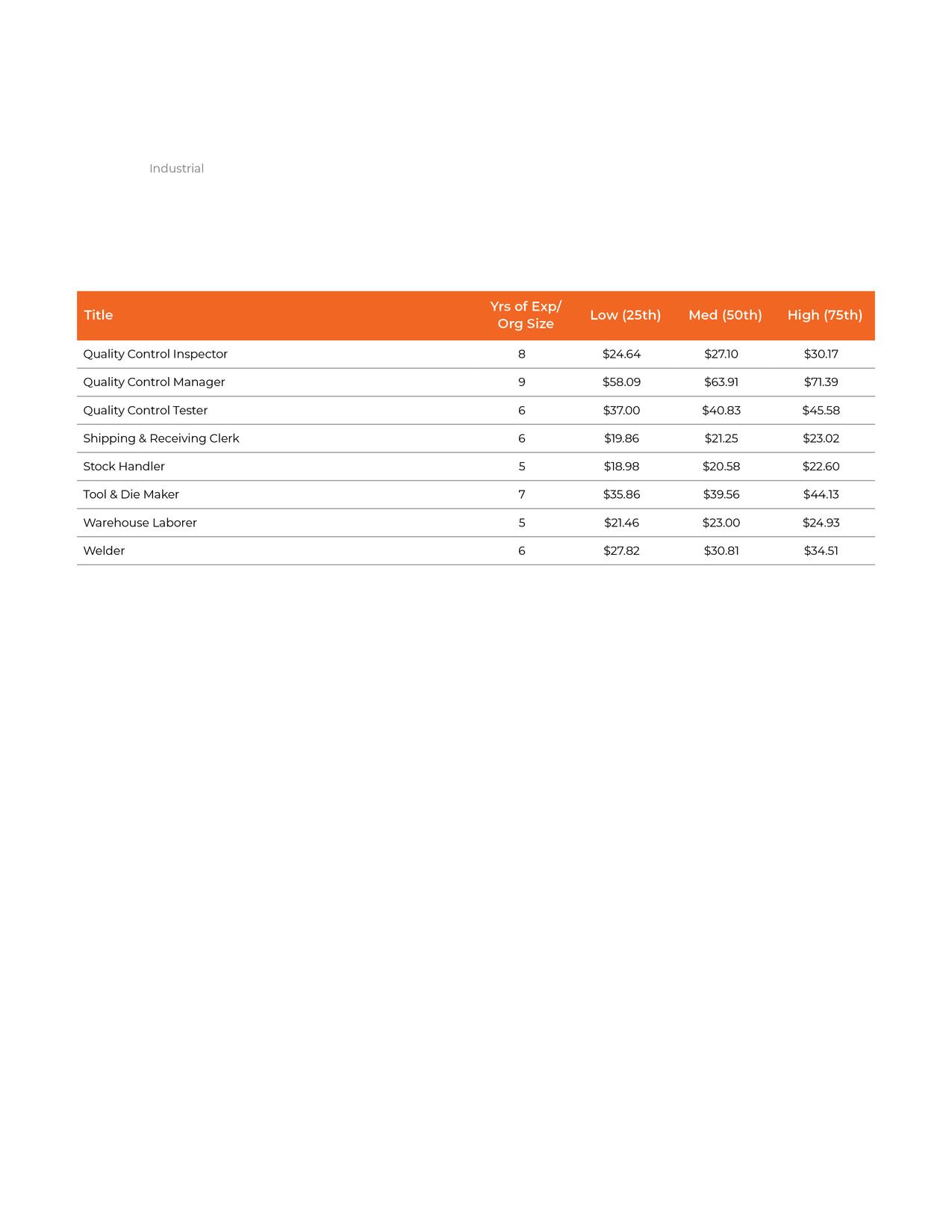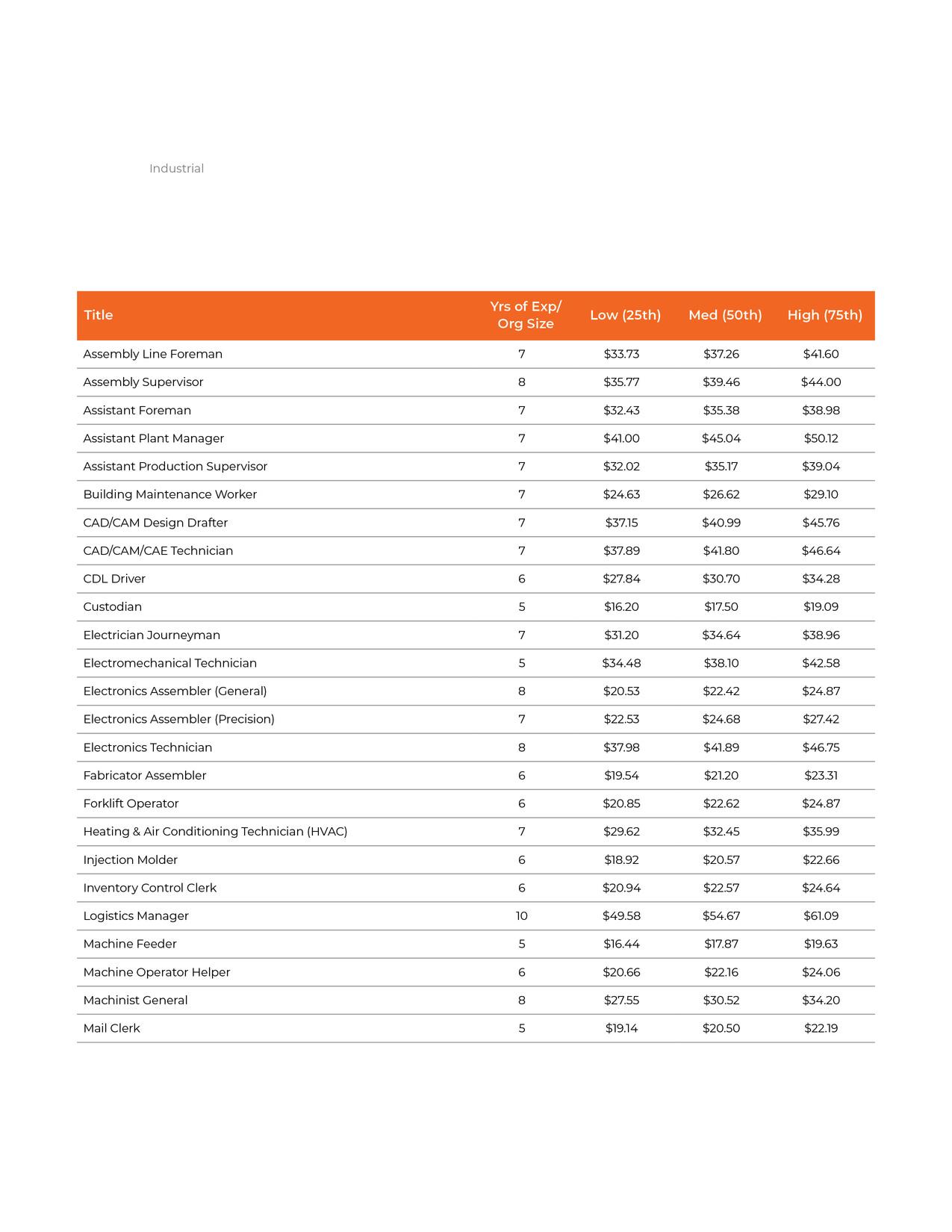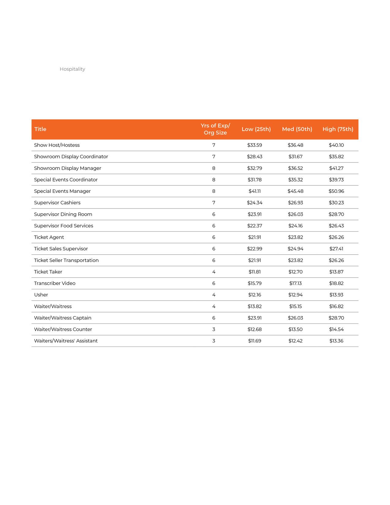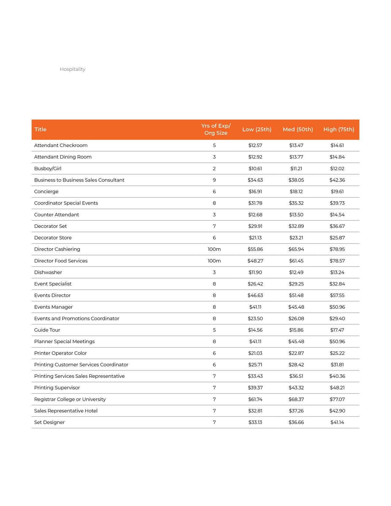 We're excited to share our 2024 Spherion Salary Guide with you Inside, you'll find a range of job titles along with their corresponding hourly pay rates at the 25th, 50th, and 75th percentiles. These rates are based on surveys conducted by the Economic Research Institute and segmented by market. They generally reflect individuals with 5-8 years of experience in their roles, making this guide a helpful tool for comparing salaries within your organization to market standards.