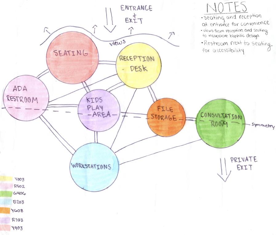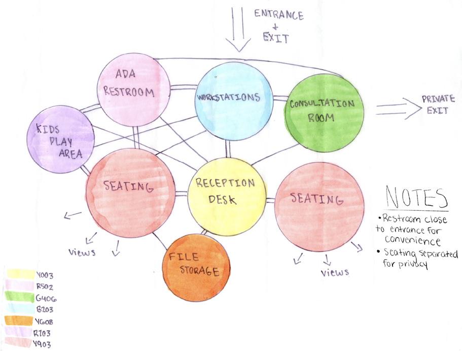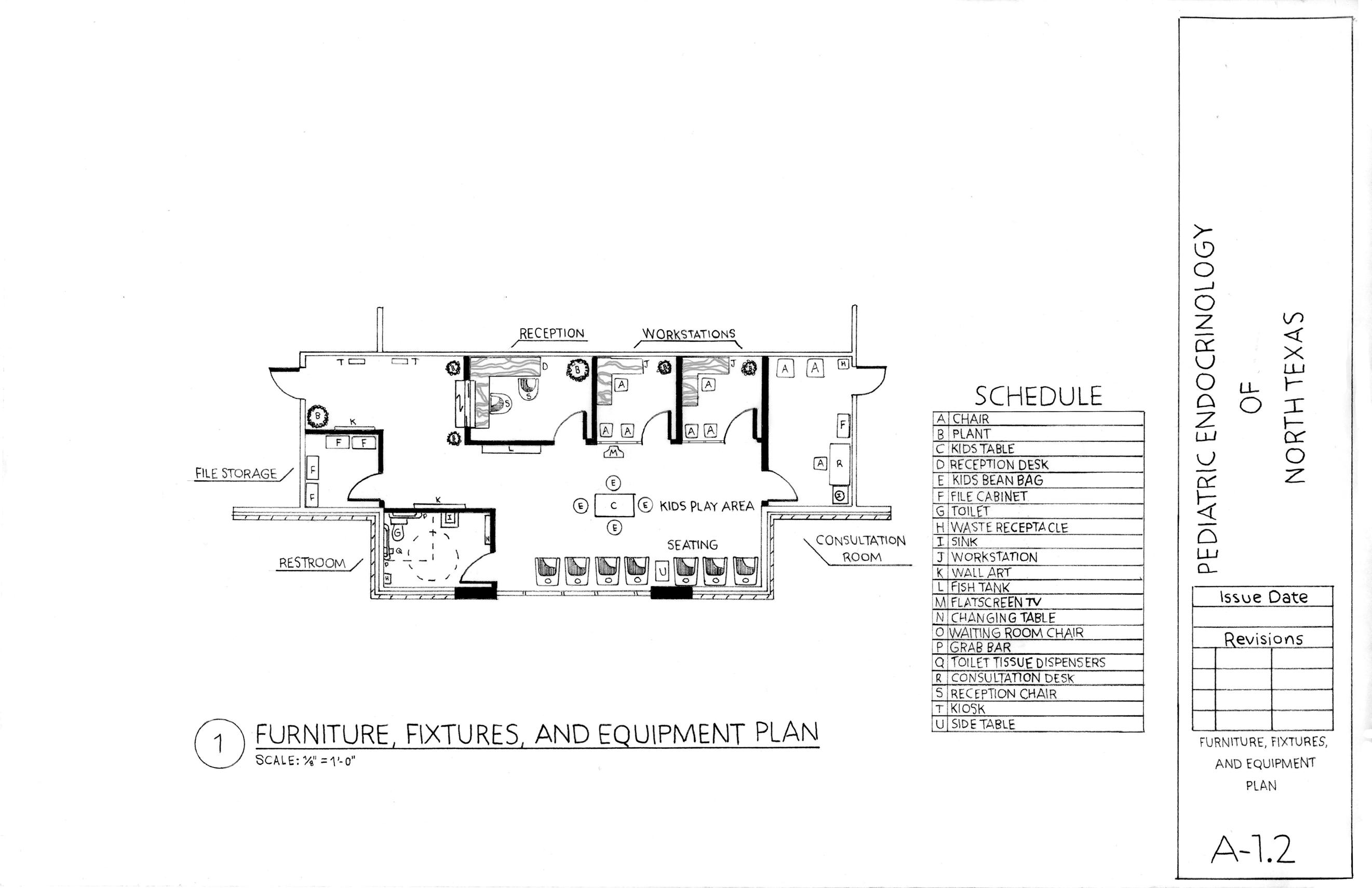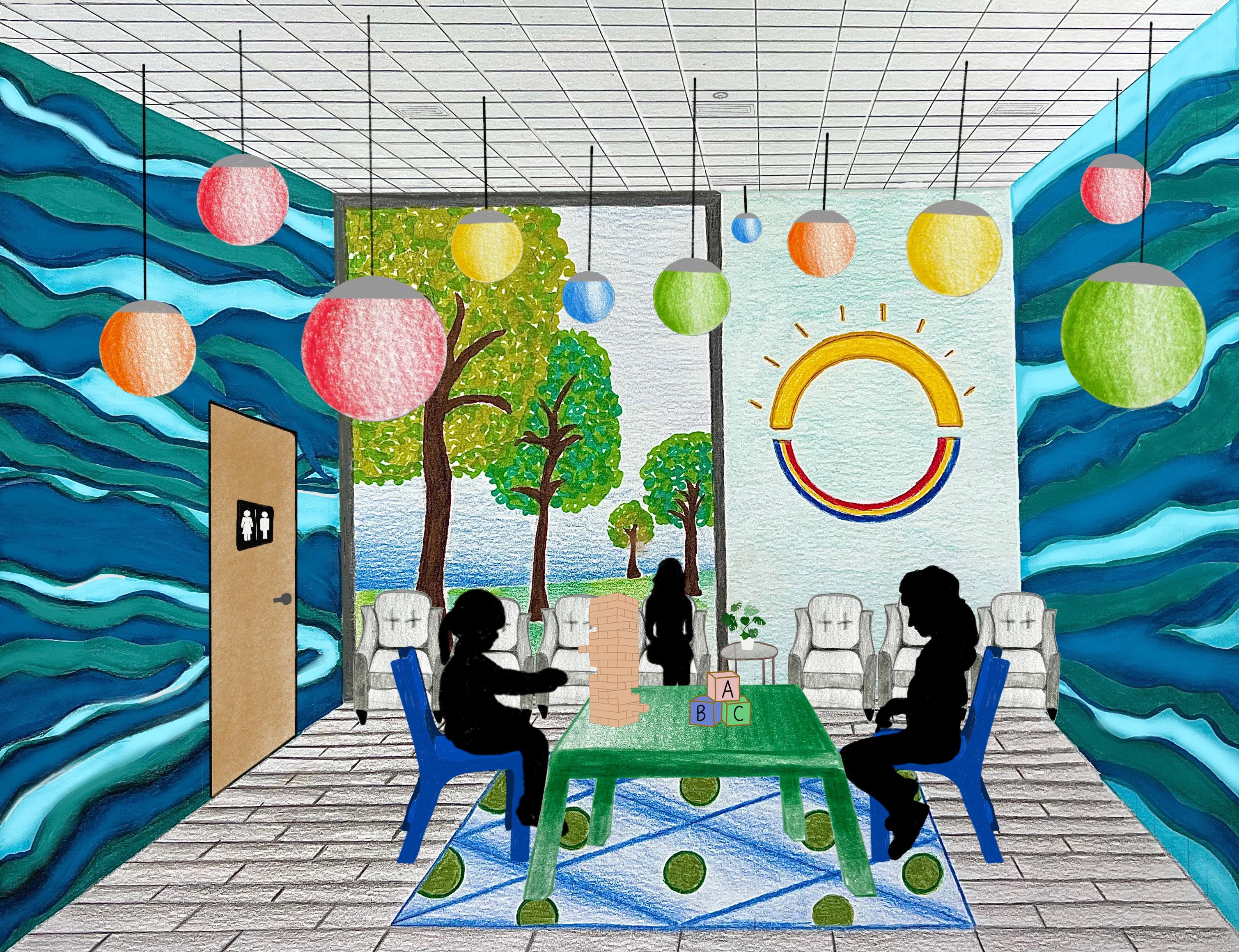This project led to admission into the University of North Texas Interior Design Program. I was tasked with designing a medical office with a given floor plan. This medical office represents the Pediatric Endocrinology of North Texas. It explores thorough research and incorporates the application of color theory in pediatric offices, consisting of strictly hand drawn documents and renderings.