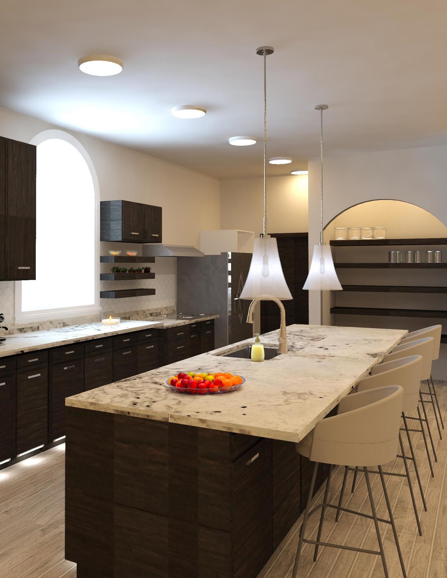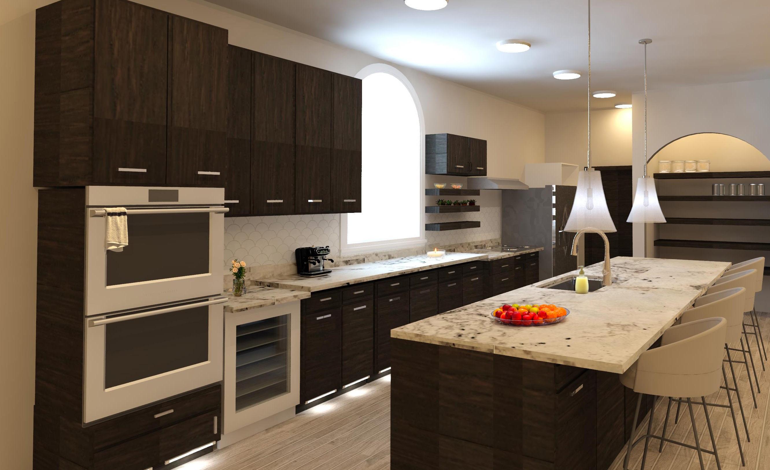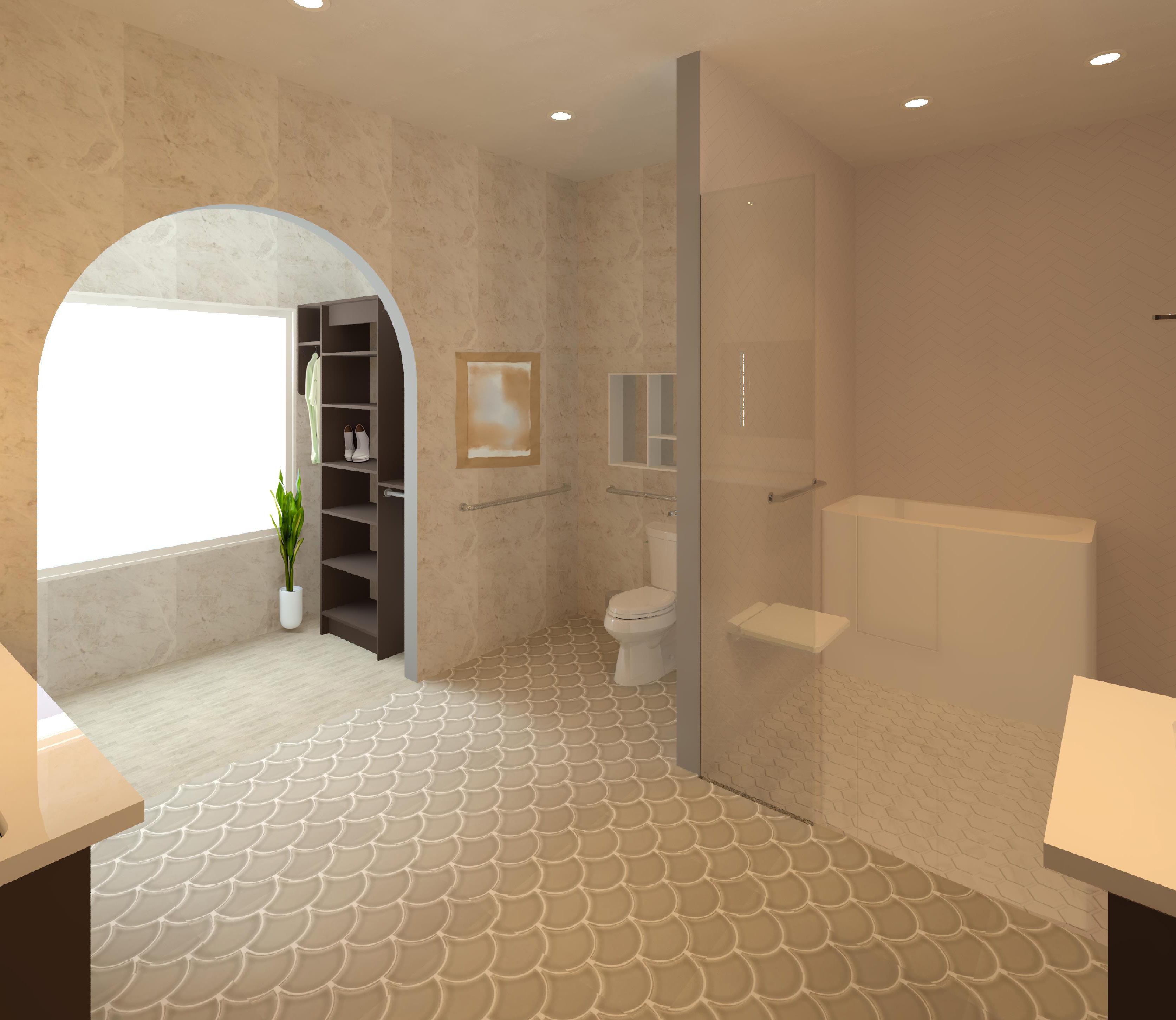 This residential remodel project consisted of thorough research of IBC codes, universal and inclusive design, NKBA standards, ADA requirements, and space planning. I was tasked with taking my client’s current bathroom and kitchen and remodel these spaces to better accommodate their disabilities. This included researching kitchen and bath planning, while intentionally choosing materials that enhanced the design of the space through durability, LEED certifications, etc.