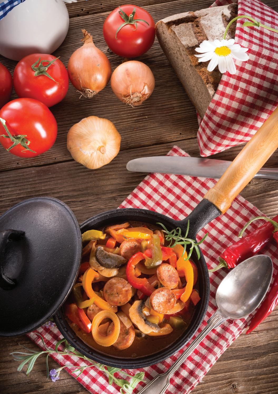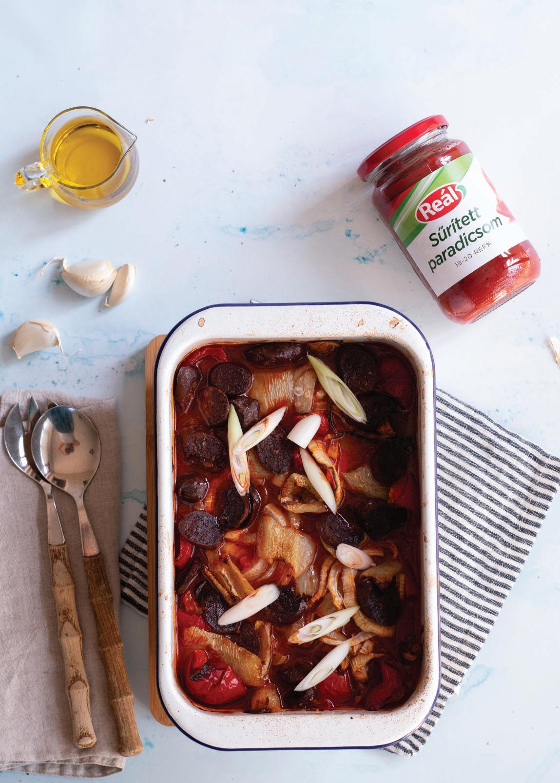 Sütőben sült lecsó csípős füstölt kolbásszal