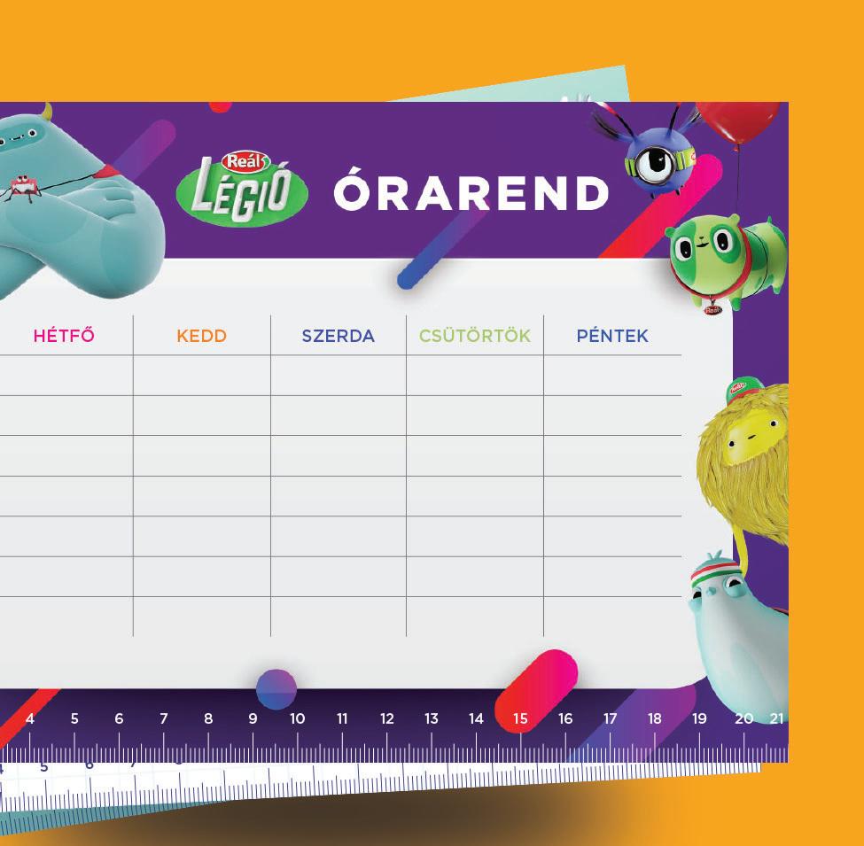 ben az iskolakezdéshez találsz hasznos dolgokat: Reál légiós tornazsákot, vonalzót, színes ceruzát, radírt, órarendet és fincsi Reál termékeket.