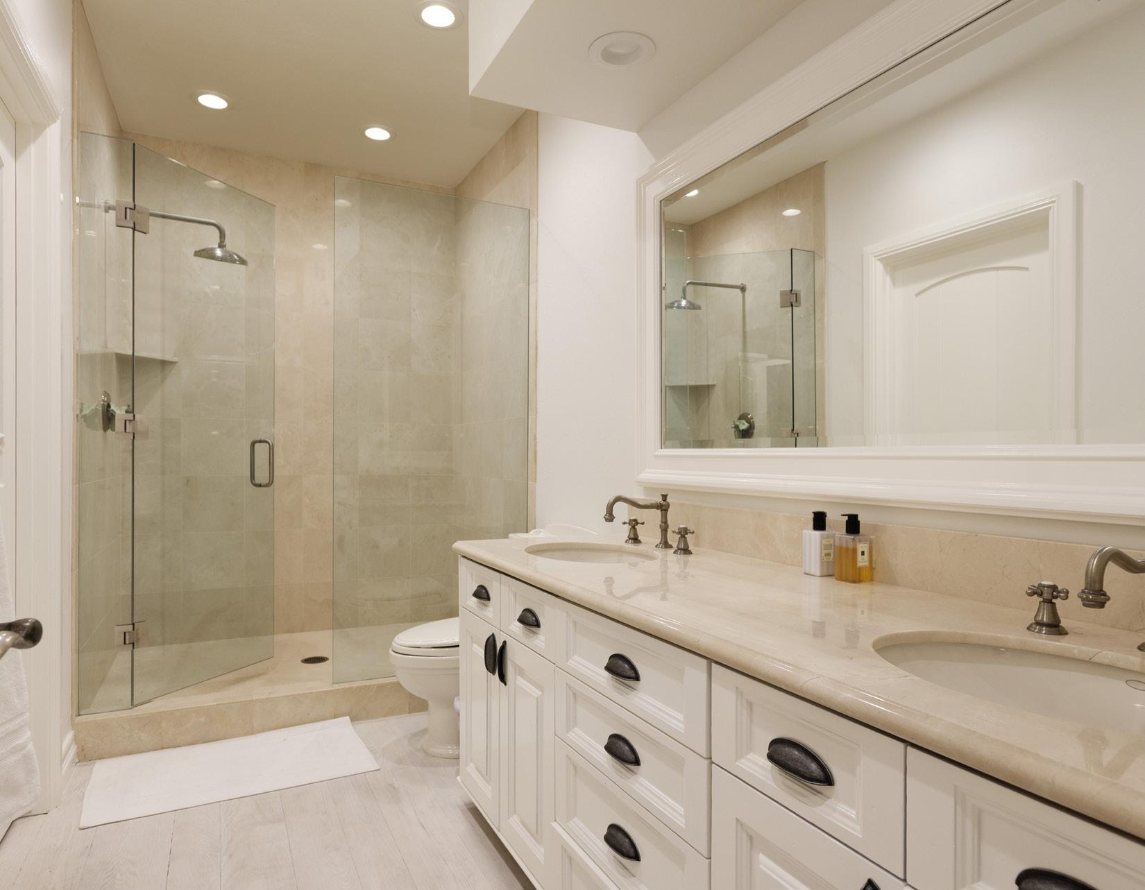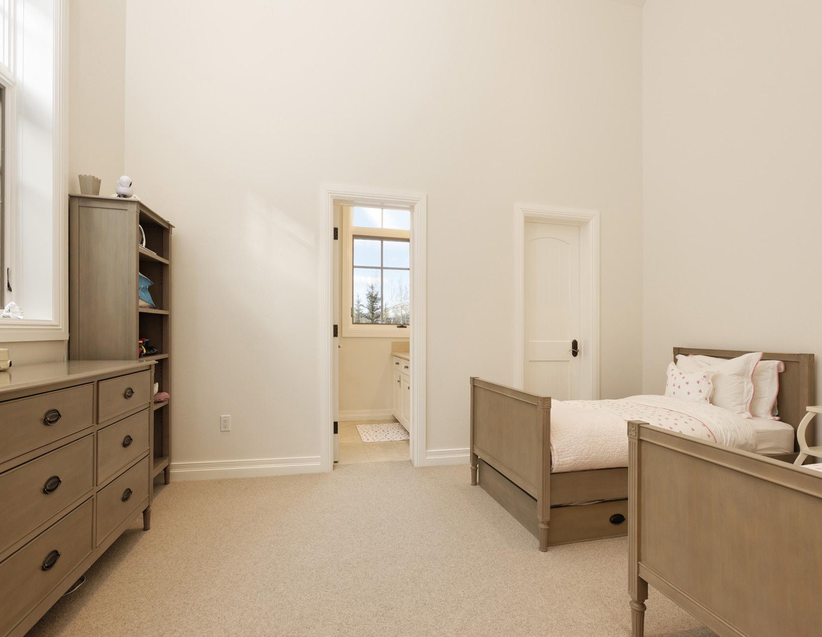 One side of the home features two spacious master suites. The top master bedroom offers an office. The other side of the home features two adorable kids’ rooms, each with private bathrooms.