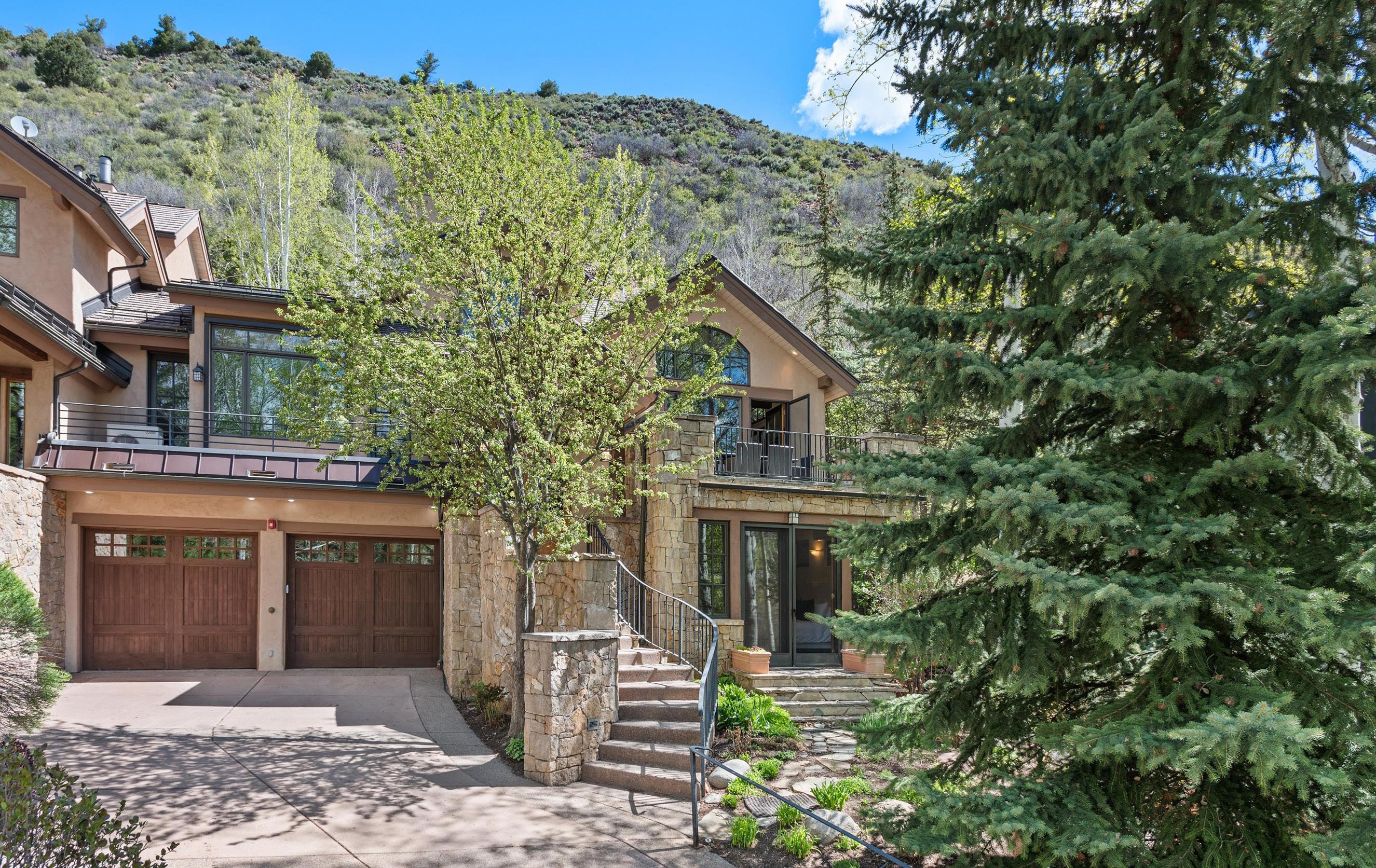 Nestled at the base if Red Butte, this West Aspen duplex is private and has convenient access to the Aspen golf course, Aspen trails and a 5-minute drive to downtown Aspen. Views of Pyramid Peak and ski areas can be seen from multiple outside decks and the hot tub. The property has four bedrooms and 4.5 bathrooms and lives on three levels.